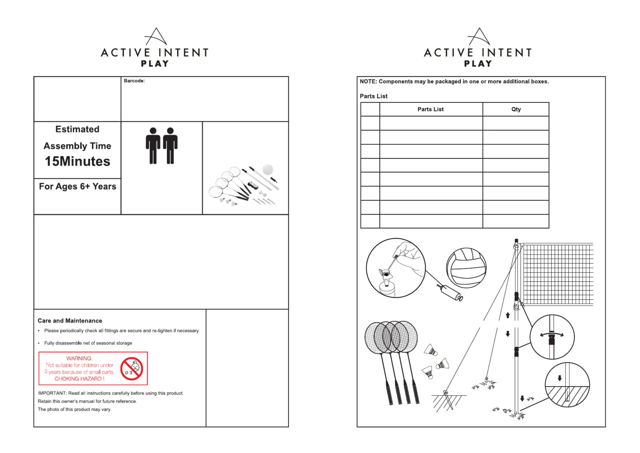 Important Badminton & Volleyball SAFETY Instructions: