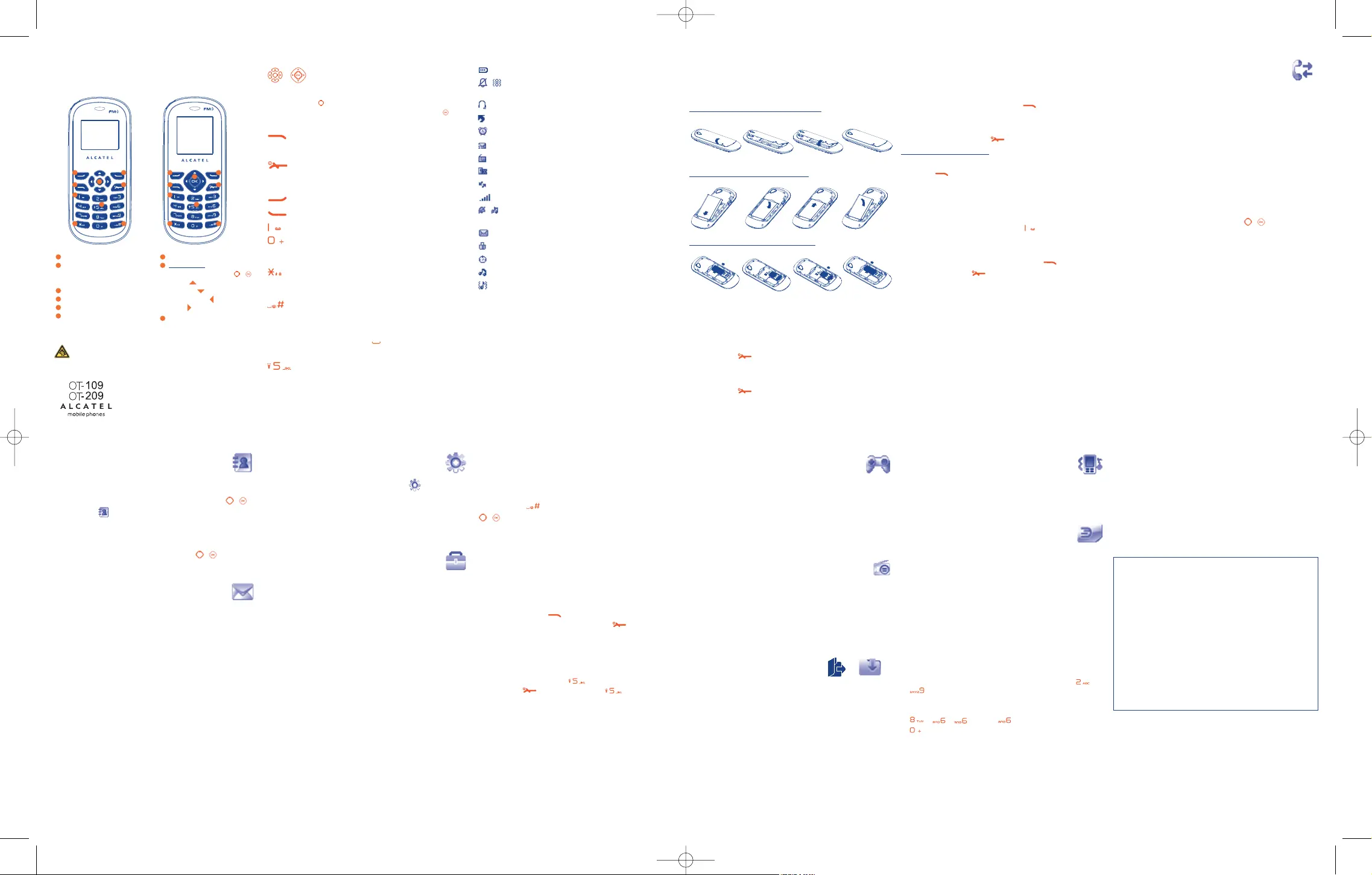 Bekijk gratis de handleiding van Alcatel OT-109 (2 pagina’s), behorend tot de categorie Mobiele telefoon. Deze gids werd als nuttig beoordeeld door 10 mensen en kreeg gemiddeld 5.0 sterren uit 6 reviews. Heb je een vraag over Alcatel OT-109 of wil je andere gebruikers van dit product iets vragen? Stel een vraag