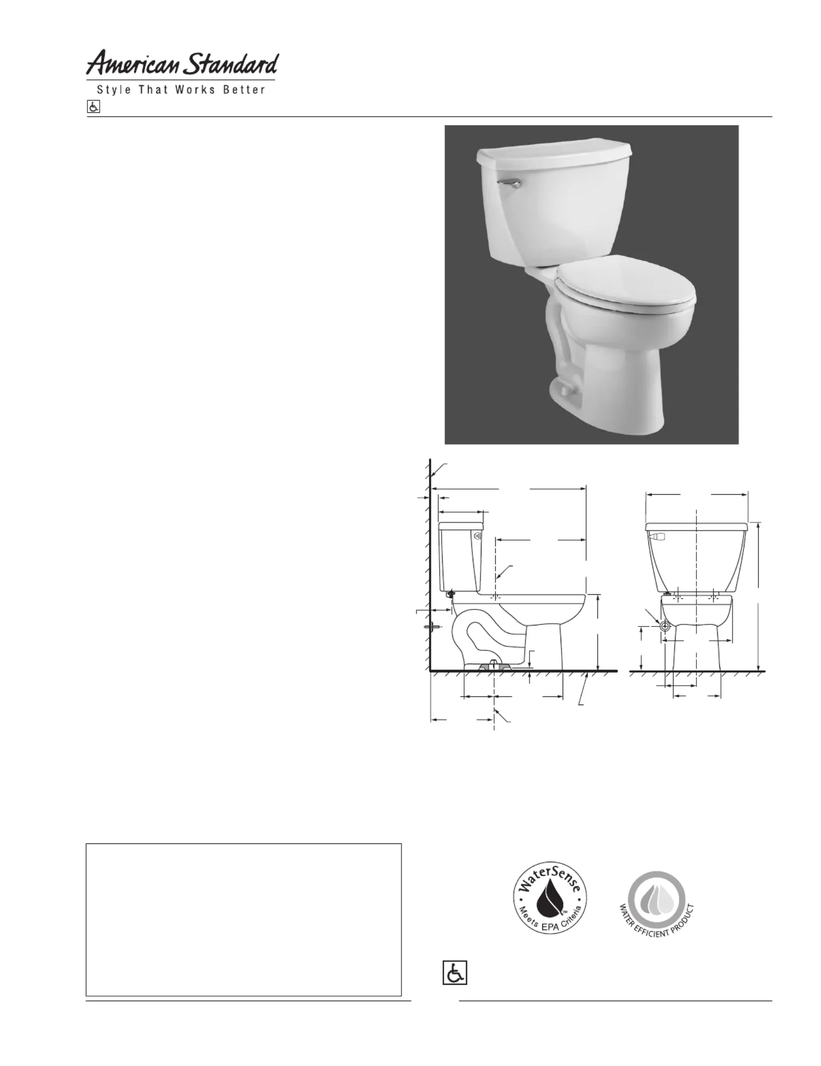• Bowl rim at 16-1/2" for accessible applications