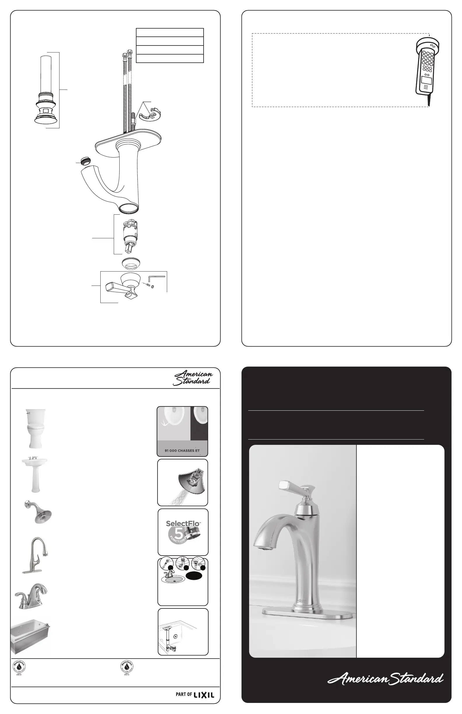 American Standard toilets, showers and faucets.