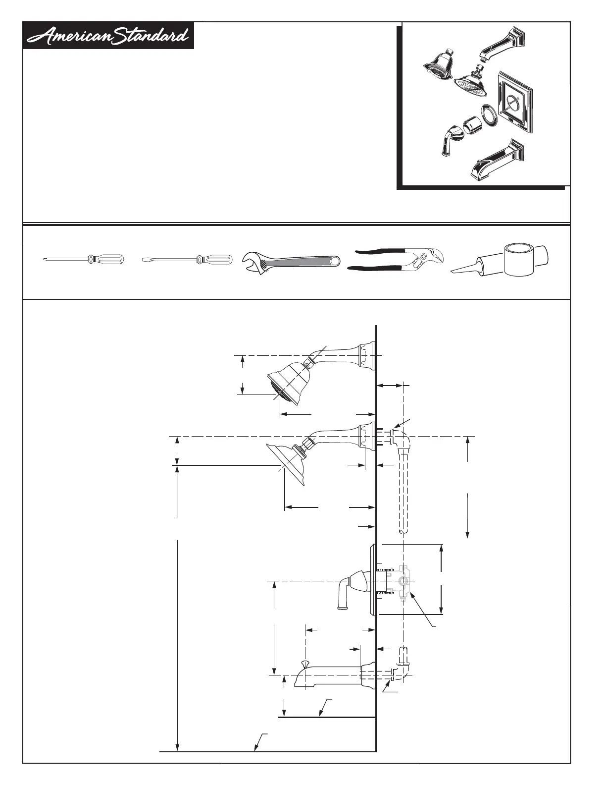 wall, note roughing-in dimensions.