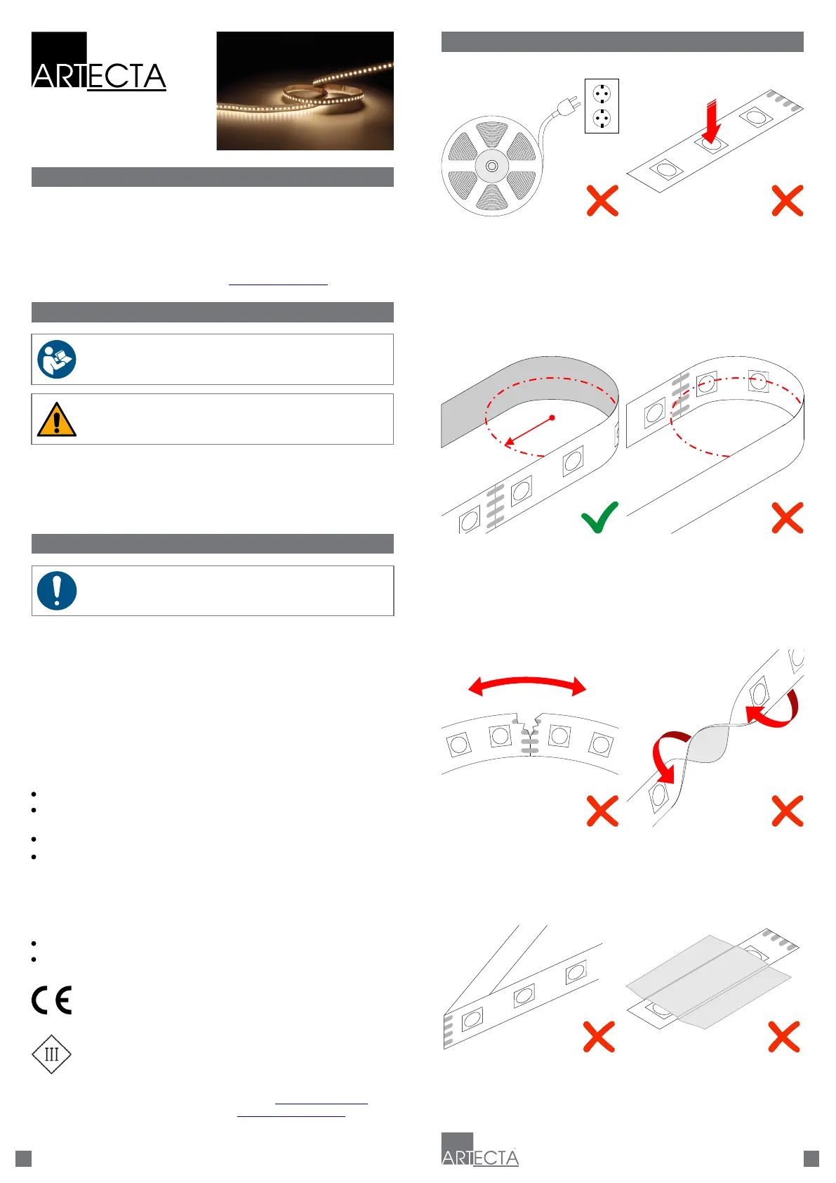 Vouw of breek de ledstrips niet.Bedek de ledstrips niet met
