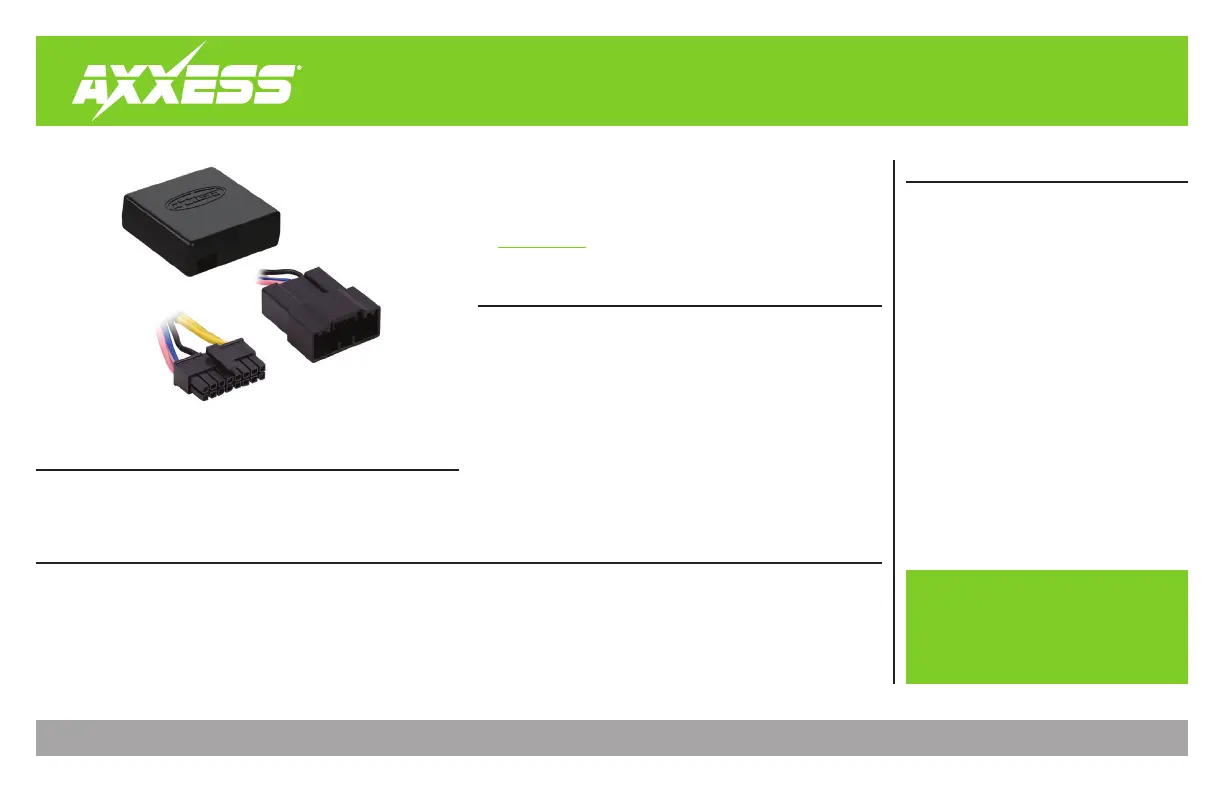 Visit AxxessInterfaces.com for more detailed information about the product and up-to-date