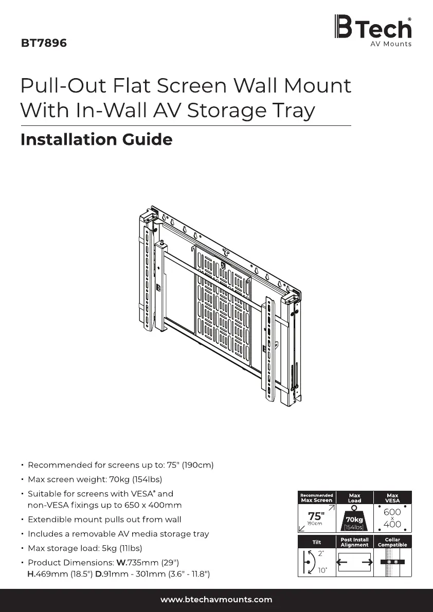 Bekijk gratis de handleiding van B-tech BT7896 (16 pagina’s), behorend tot de categorie Flat panel steun. Deze gids werd als nuttig beoordeeld door 2 mensen en kreeg gemiddeld 4.0 sterren uit 8 reviews. Heb je een vraag over B-tech BT7896 of wil je andere gebruikers van dit product iets vragen? Stel een vraag
