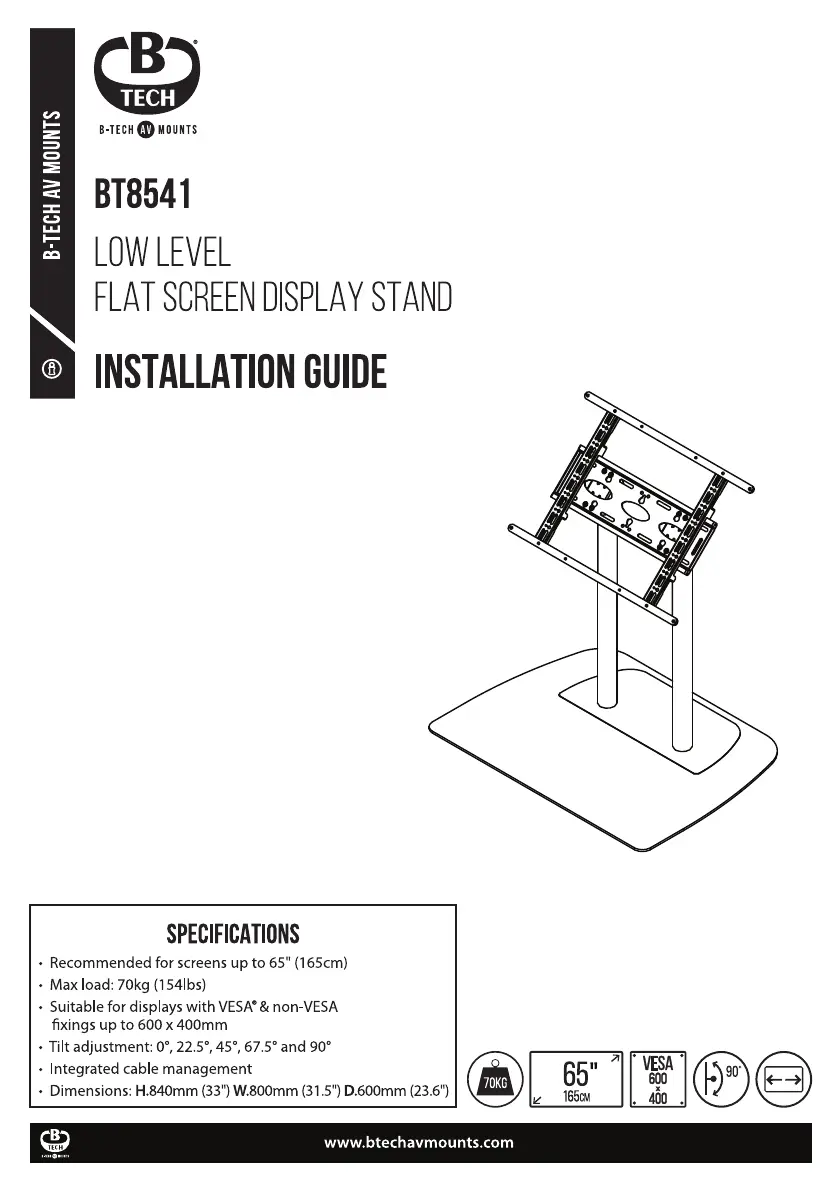 Bekijk gratis de handleiding van B-tech BT8541 (12 pagina’s), behorend tot de categorie Flat panel steun. Deze gids werd als nuttig beoordeeld door 21 mensen en kreeg gemiddeld 4.0 sterren uit 7 reviews. Heb je een vraag over B-tech BT8541 of wil je andere gebruikers van dit product iets vragen? Stel een vraag