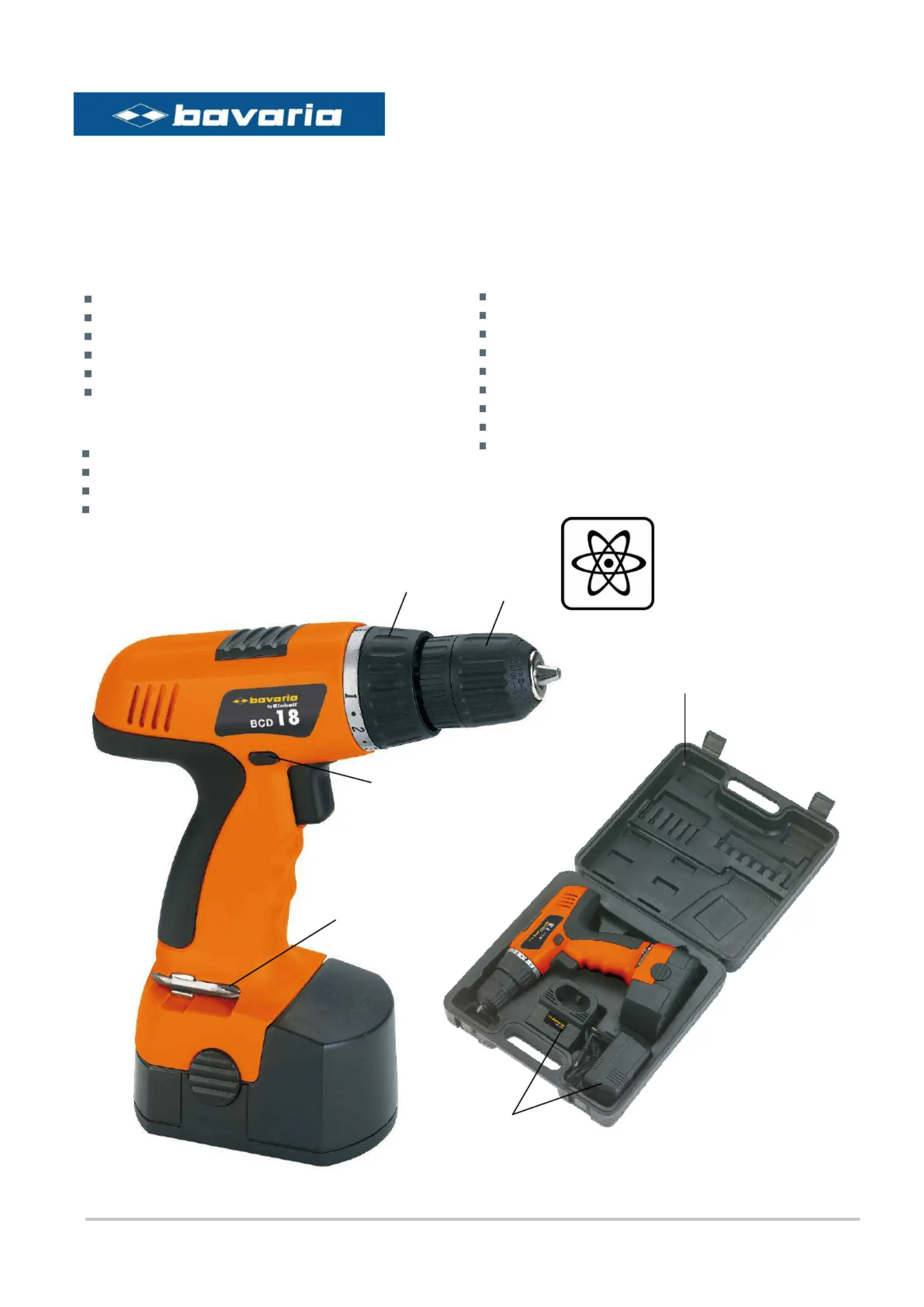 Bekijk gratis de handleiding van Bavaria BCD 18 (8 pagina’s), behorend tot de categorie Boormachine. Deze gids werd als nuttig beoordeeld door 22 mensen en kreeg gemiddeld 4.1 sterren uit 6 reviews. Heb je een vraag over Bavaria BCD 18 of wil je andere gebruikers van dit product iets vragen? Stel een vraag