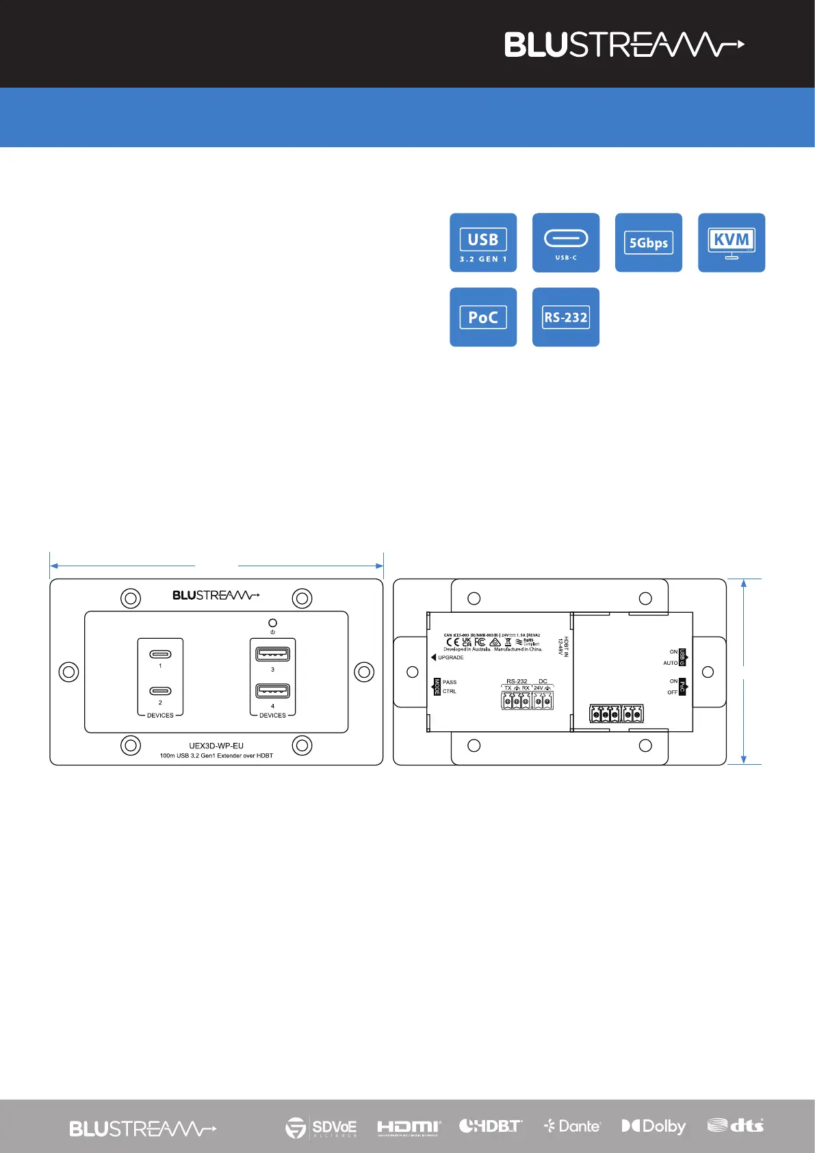 Compatible with Blustream UEX3H and UEX3H-WP