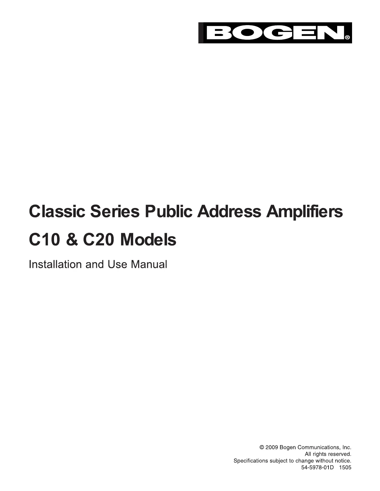 Bogen Classic Series C10 Handleiding