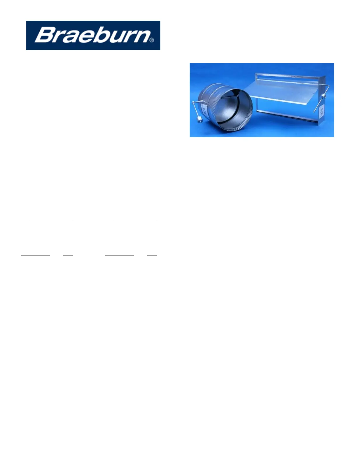and round sizes. The chart below lists the available sizes of dampers