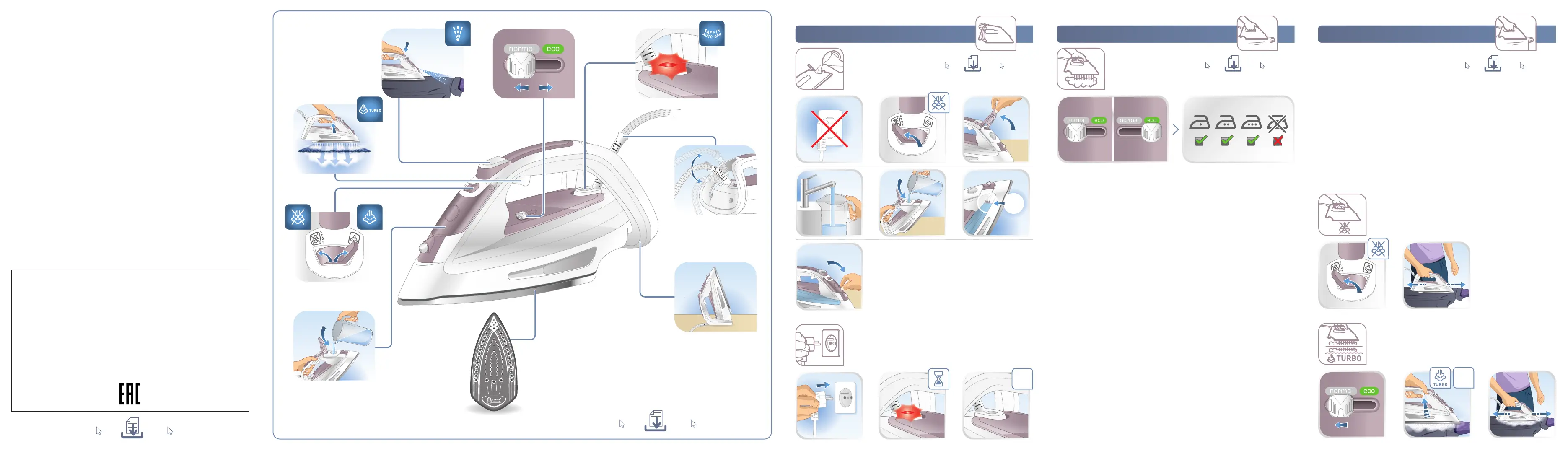 normal“или „eco“можете да гладите всички видове гладаеми тъкани, на които отговарят дадените по-долу