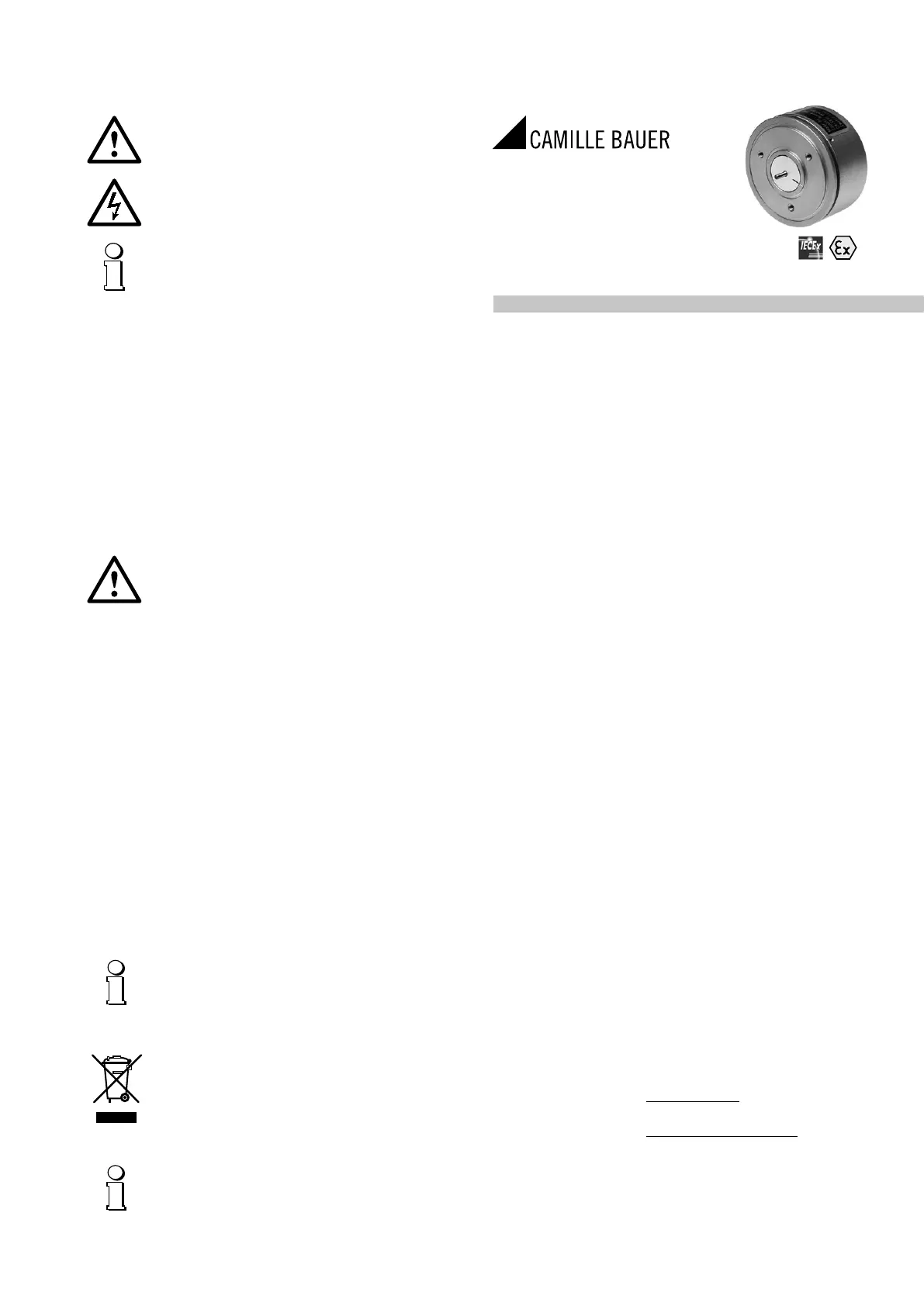 • Operation of device versions with explosion protection is