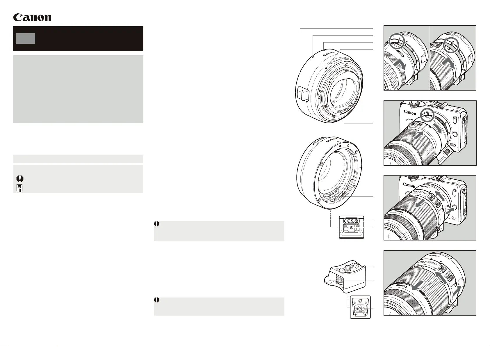 Bekijk gratis de handleiding van Canon Mount Adapter EF-EOS M (2 pagina’s), behorend tot de categorie Lens. Deze gids werd als nuttig beoordeeld door 13 mensen en kreeg gemiddeld 5.0 sterren uit 8 reviews. Heb je een vraag over Canon Mount Adapter EF-EOS M of wil je andere gebruikers van dit product iets vragen? Stel een vraag