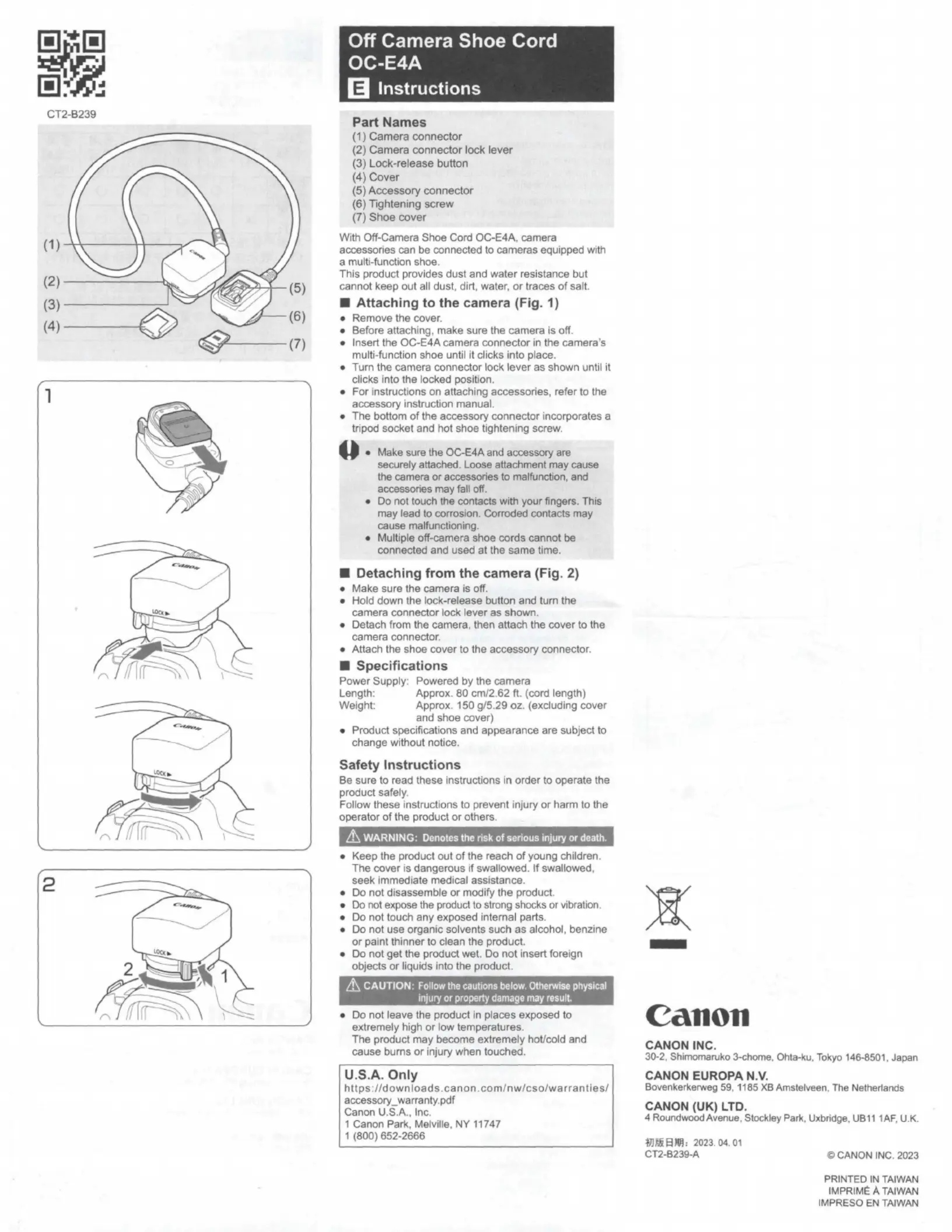 Canon OC-E4A Handleiding