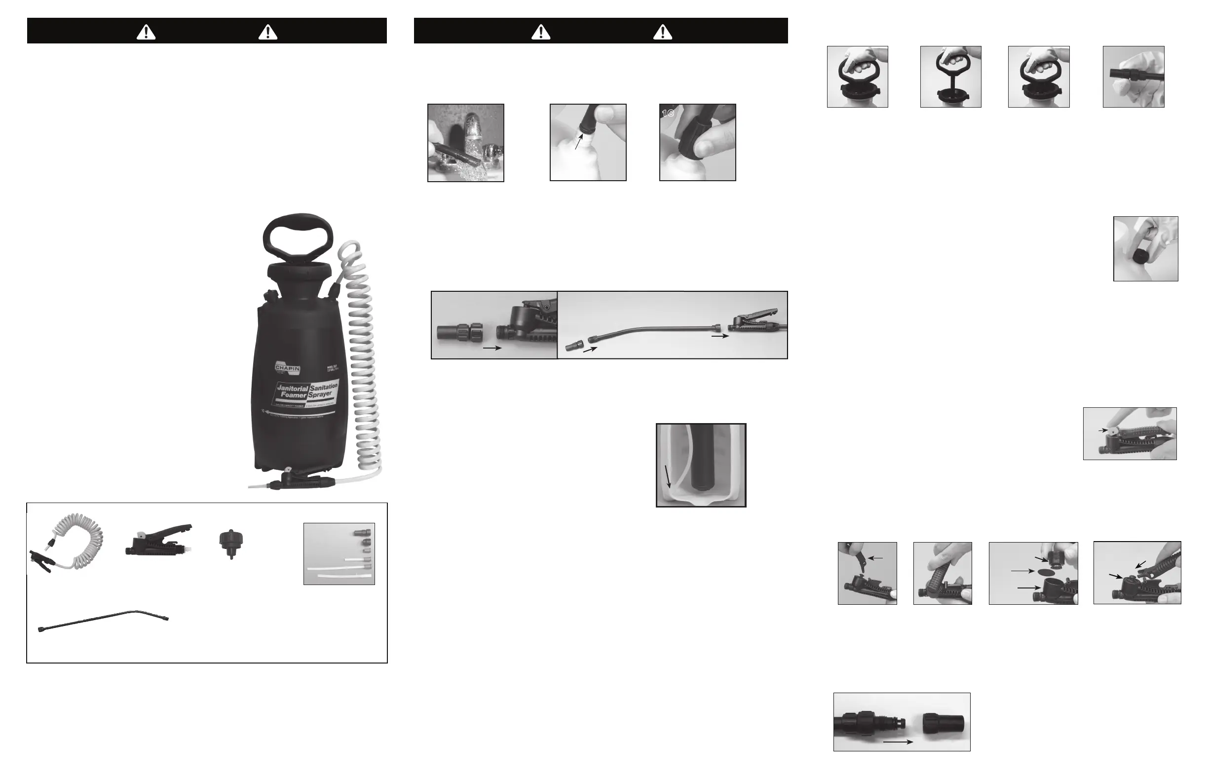 Instructions, except pump unit only 8-10 strokes. Be sure that the wand and nozzle are thoroughly rinsed with water