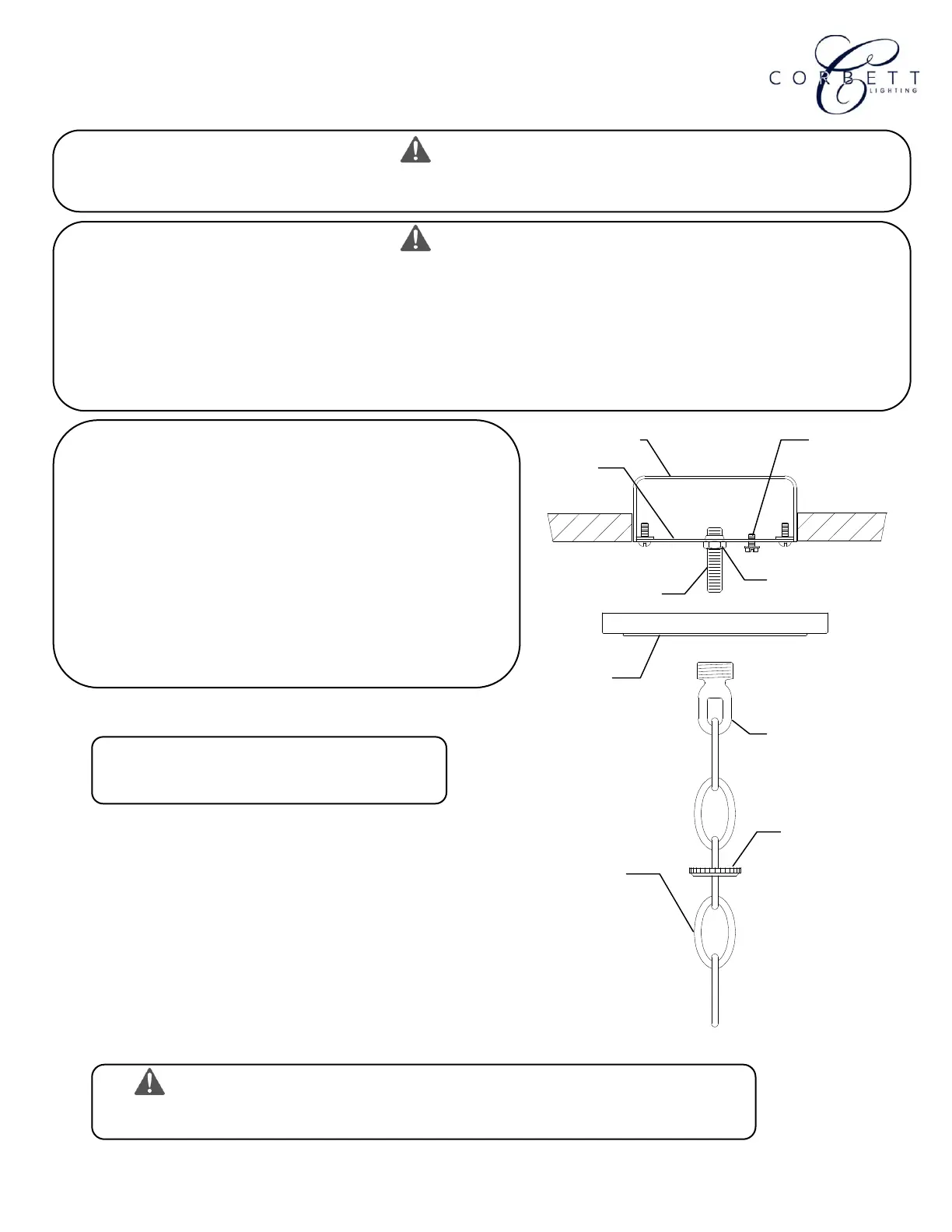 chain. Hang the fixture on the chain at the desired height. Remove excess chain. Close the bottom link of chain.