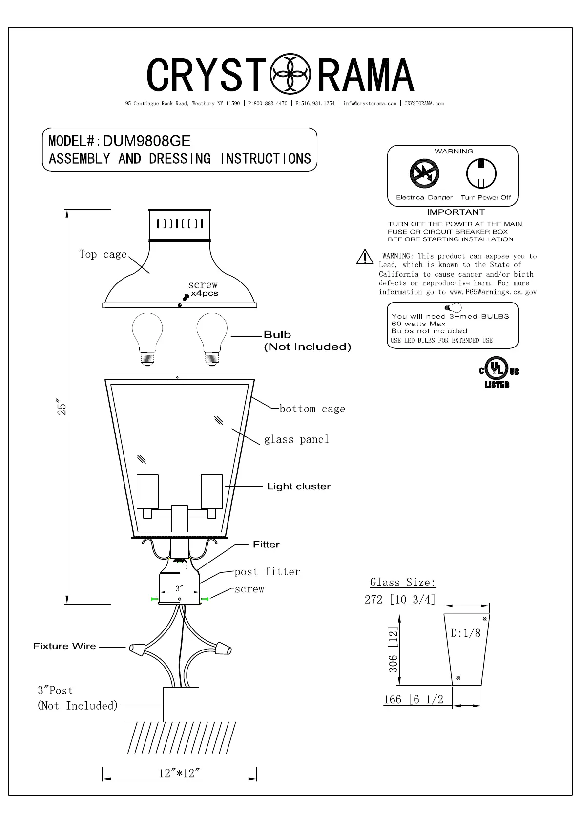 Bekijk gratis de handleiding van Crystorama Dumont DUM-9808-GE (2 pagina’s), behorend tot de categorie Niet gecategoriseerd. Deze gids werd als nuttig beoordeeld door 4 mensen en kreeg gemiddeld 4.0 sterren uit 8 reviews. Heb je een vraag over Crystorama Dumont DUM-9808-GE of wil je andere gebruikers van dit product iets vragen? Stel een vraag