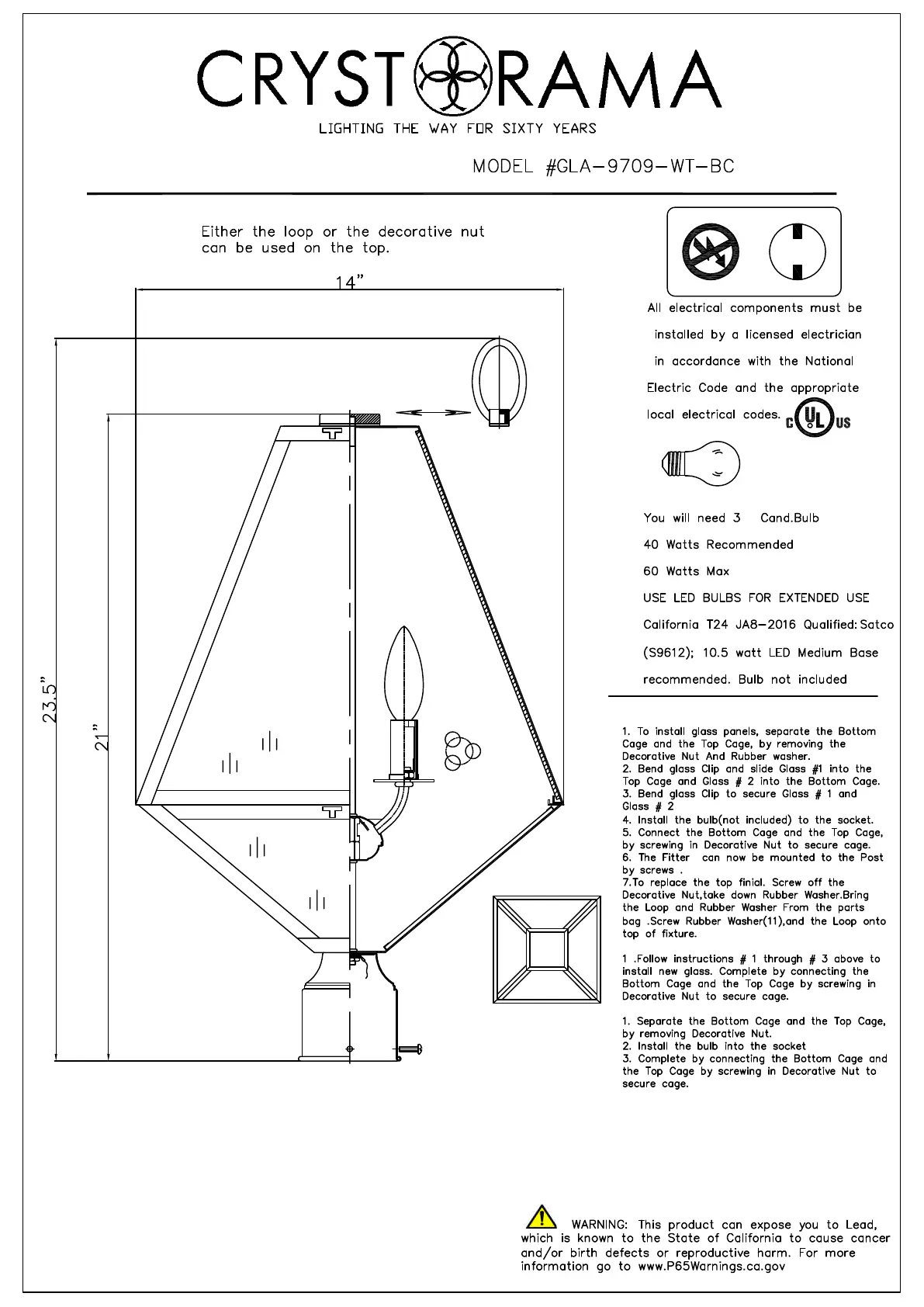 Bekijk gratis de handleiding van Crystorama Glacier GLA-9709 (2 pagina’s), behorend tot de categorie Niet gecategoriseerd. Deze gids werd als nuttig beoordeeld door 4 mensen en kreeg gemiddeld 4.5 sterren uit 3 reviews. Heb je een vraag over Crystorama Glacier GLA-9709 of wil je andere gebruikers van dit product iets vragen? Stel een vraag