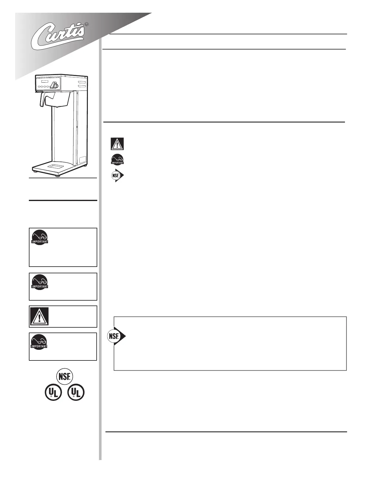 extremely hard water, we highly recommend the use of a Curtis approved water lter. For our full line of