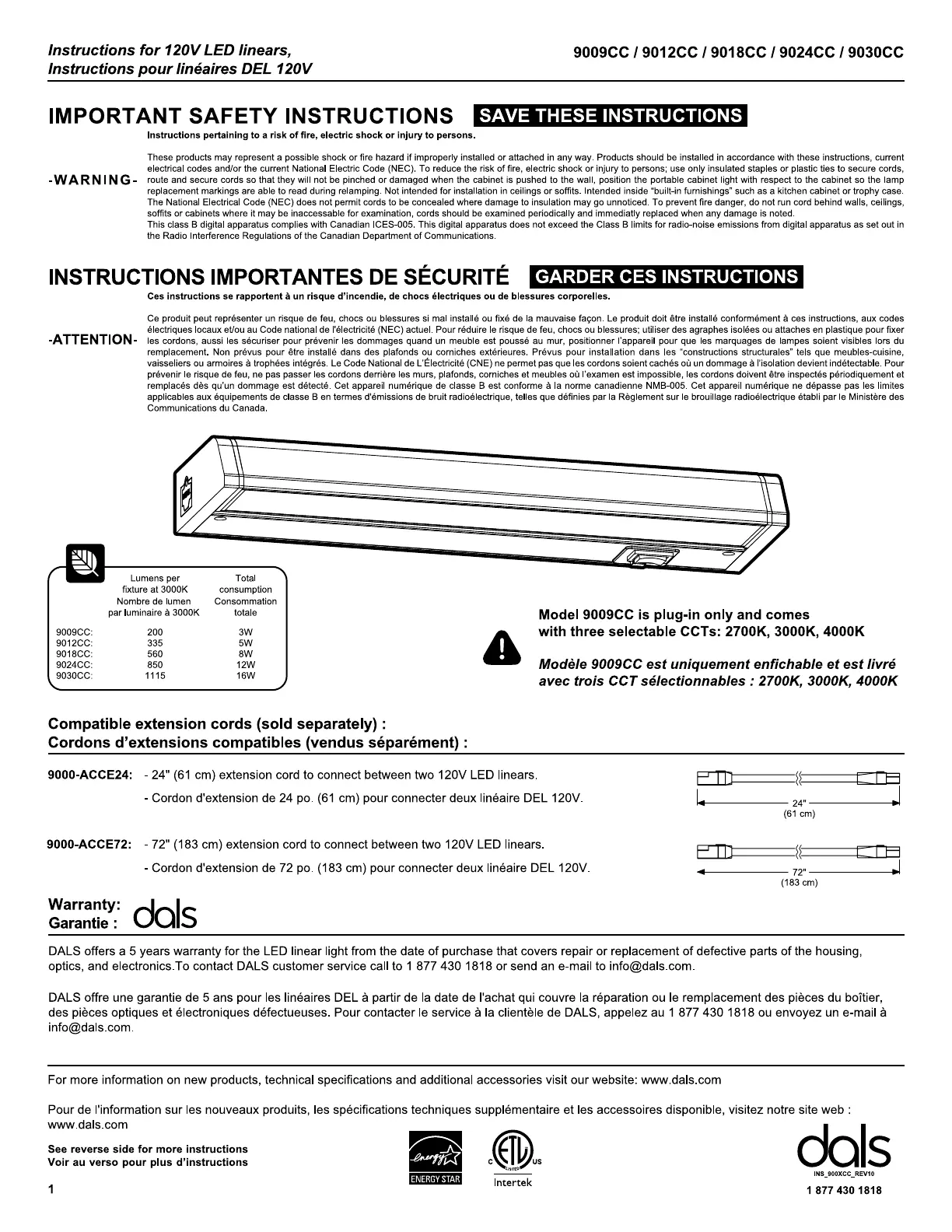 Dals Counterled Linear 9009CC Handleiding