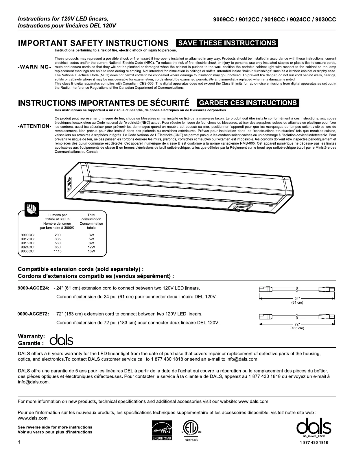 Dals Counterled Linear 9018CC Handleiding