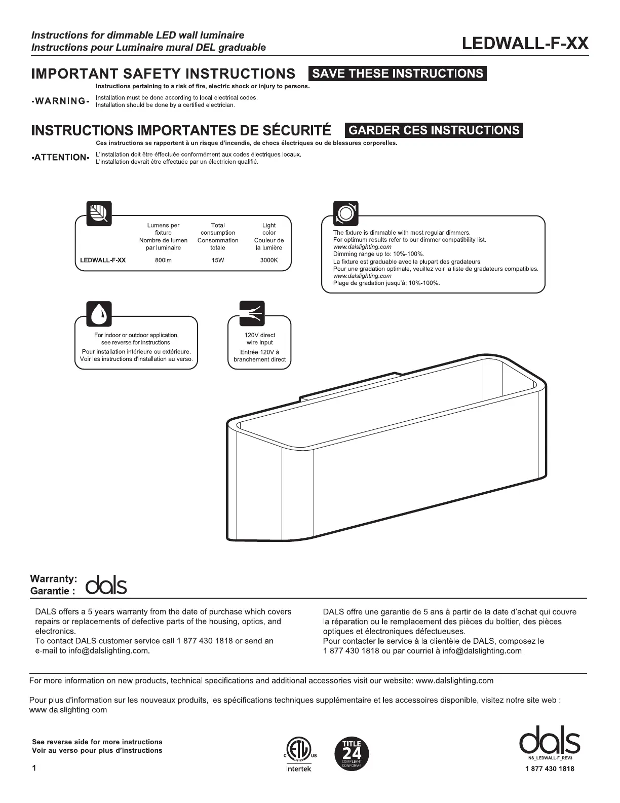 Dals LEDWALL-F-SG Handleiding