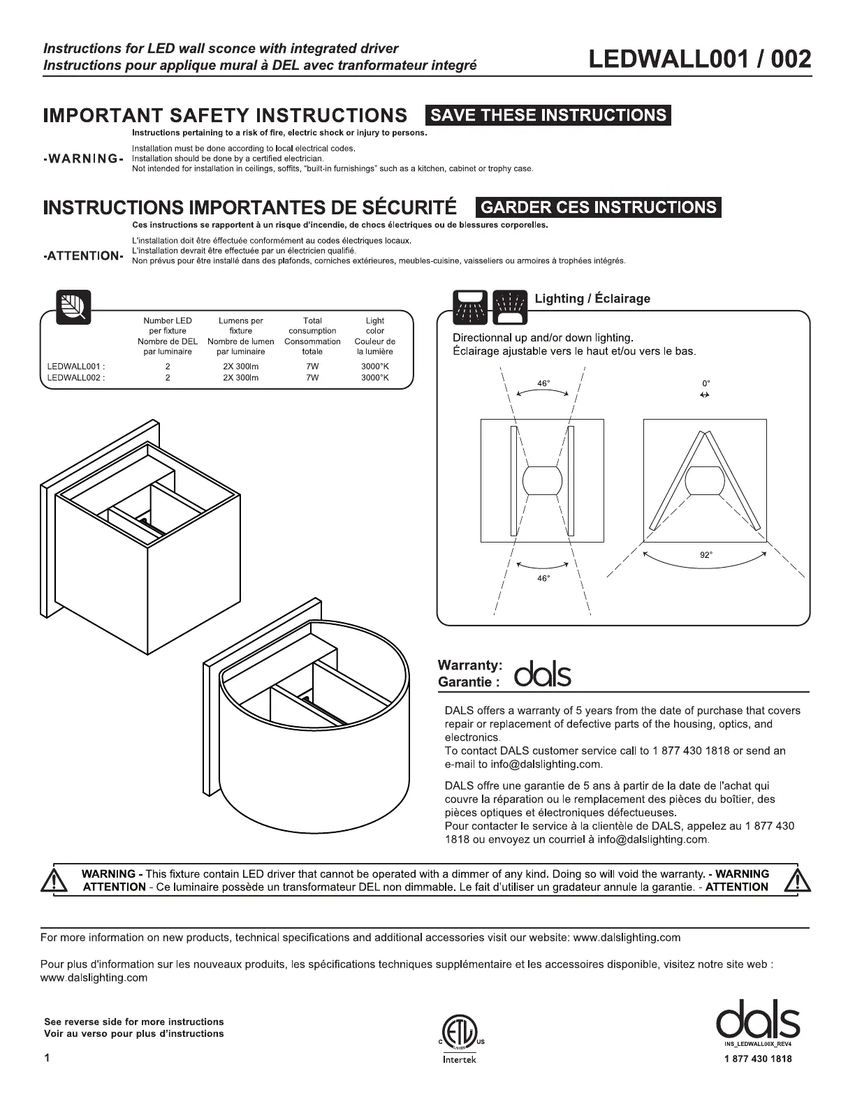 Dals LEDWALL001 Handleiding