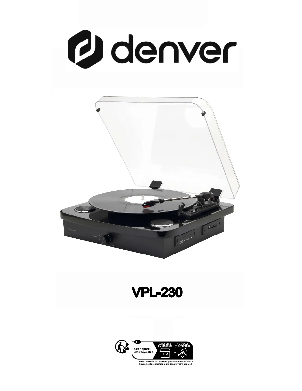 Bekijk gratis de handleiding van Denver VPL-230 (10 pagina’s), behorend tot de categorie Platenspeler. Deze gids werd als nuttig beoordeeld door 75 mensen en kreeg gemiddeld 4.7 sterren uit 5 reviews. Heb je een vraag over Denver VPL-230 of wil je andere gebruikers van dit product iets vragen? Stel een vraag