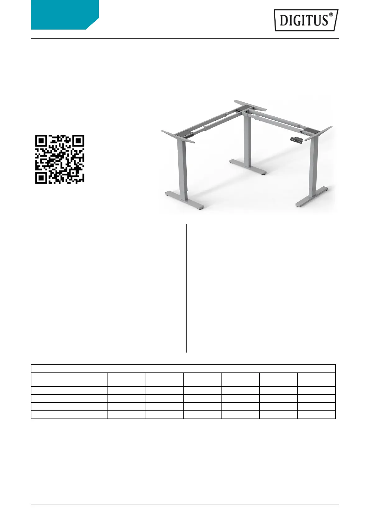 DIGITUS Electrically height-adjustable table frame, 90°