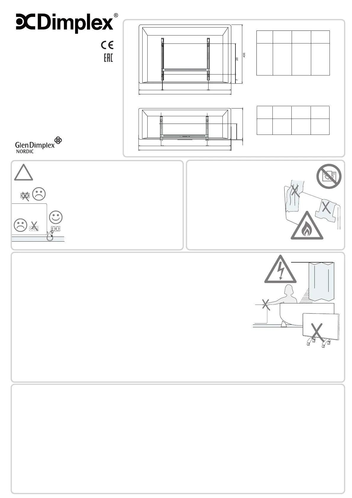 (DK) Varmepanelet skal installeres uden for rækkevidde for folk i brusebad eller badekar. Varmepanel må ikke anvendes i umiddelbar nærhed af