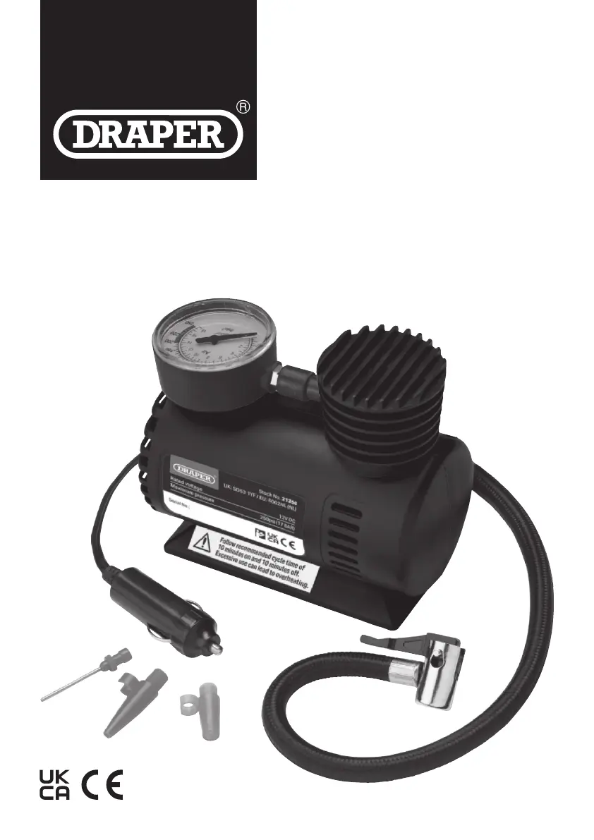Bekijk gratis de handleiding van Draper 21256 (12 pagina’s), behorend tot de categorie Compressor. Deze gids werd als nuttig beoordeeld door 31 mensen en kreeg gemiddeld 4.5 sterren uit 8 reviews. Heb je een vraag over Draper 21256 of wil je andere gebruikers van dit product iets vragen? Stel een vraag