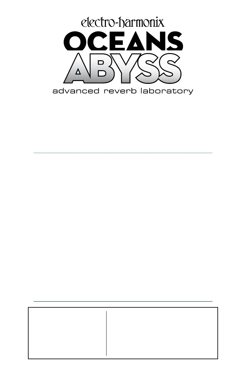 Thank you for purchasing the EHX Oceans Abyss. The Oceans Abyss expands on
