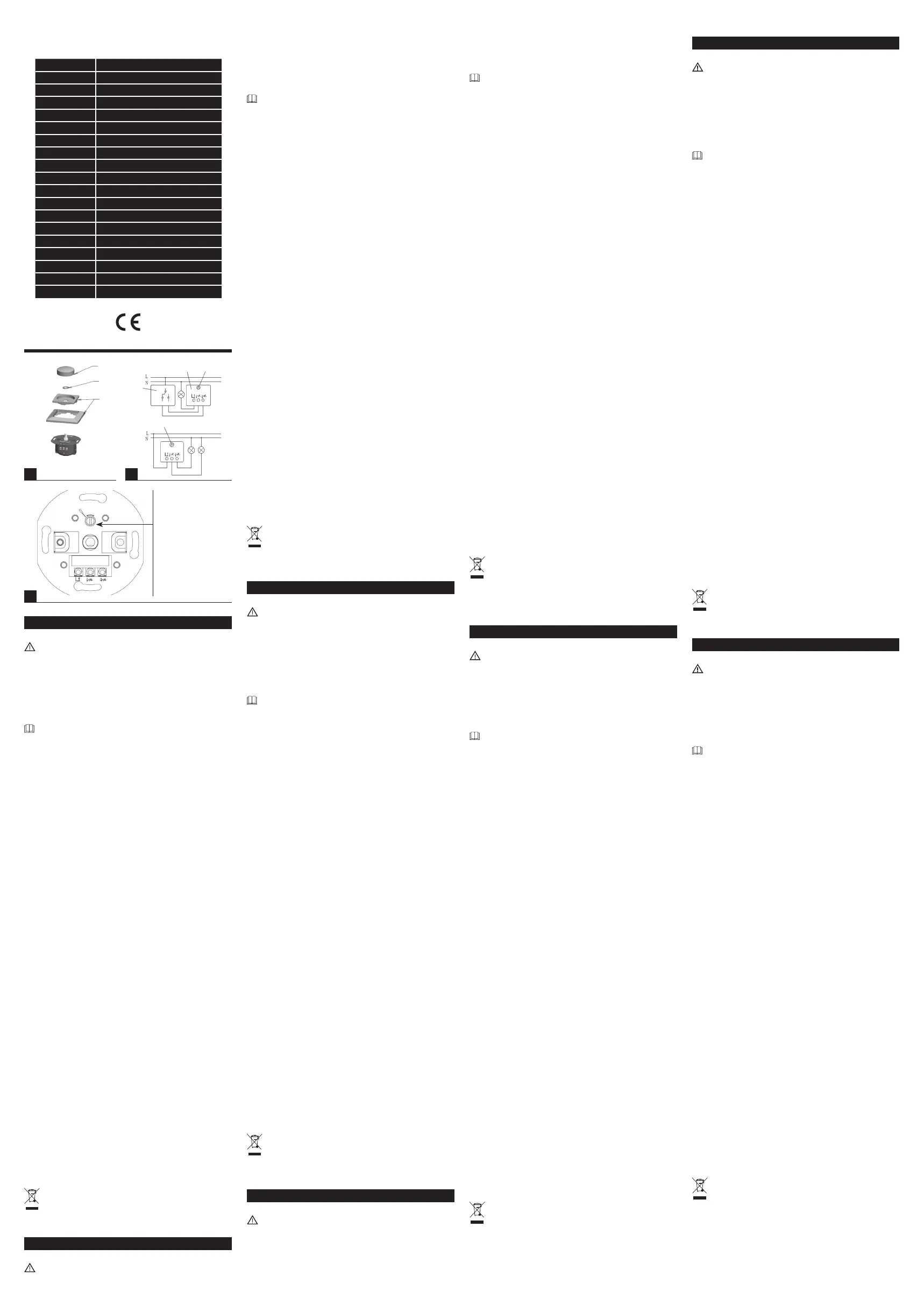 wall. If the dimmer is installed in a wall of aerated concrete, wood, gypsum plasterboard or