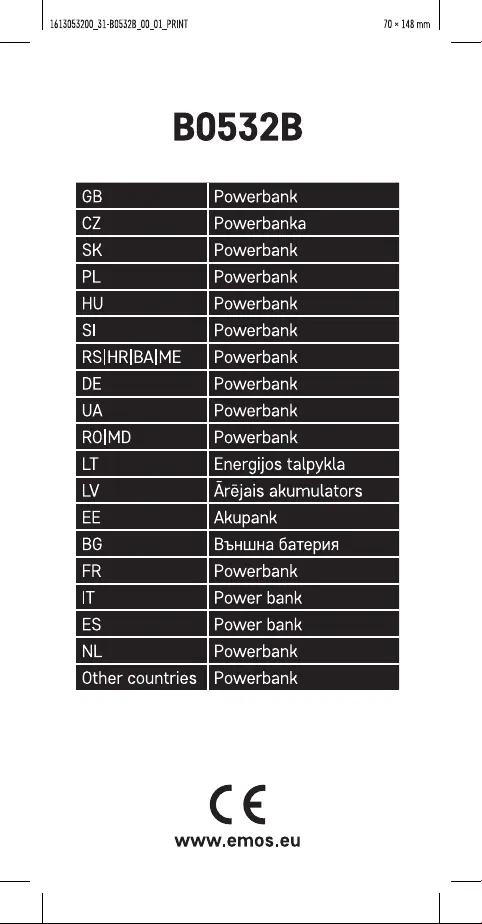 Bekijk gratis de handleiding van EMOS B0532B (13 pagina’s), behorend tot de categorie powerbank. Deze gids werd als nuttig beoordeeld door 19 mensen en kreeg gemiddeld 4.7 sterren uit 5 reviews. Heb je een vraag over EMOS B0532B of wil je andere gebruikers van dit product iets vragen? Stel een vraag