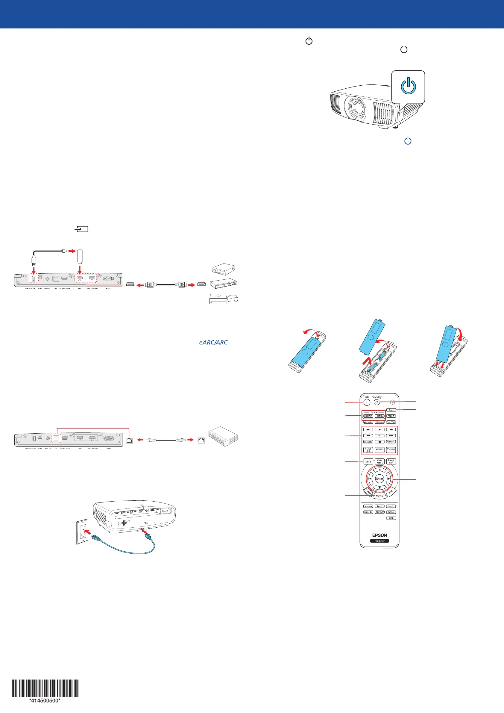 • When projecting images at 4K 120Hz, use an HDMI 2.1 rated cable (ultra-high