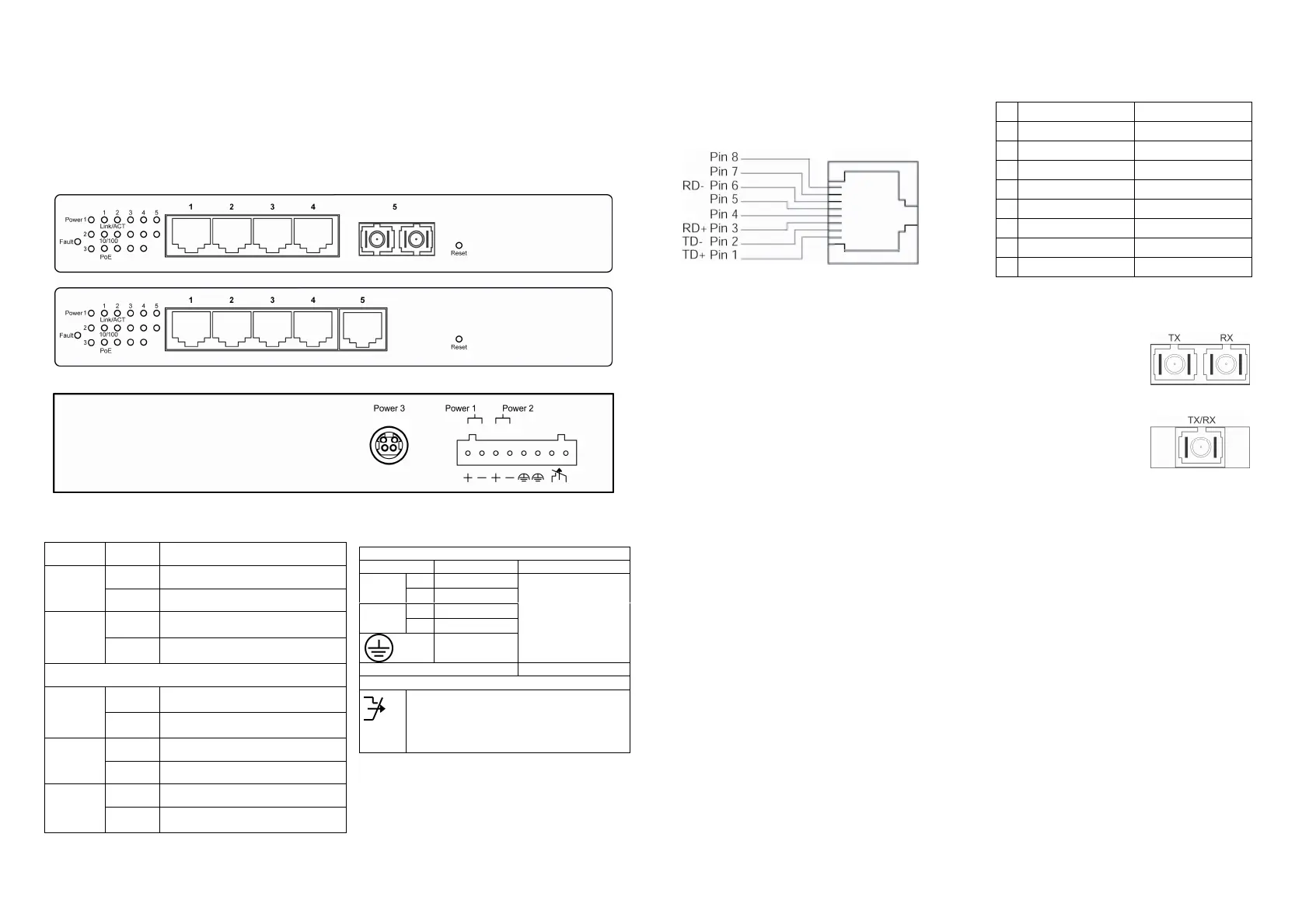 PinPoE Ports (Port 1-4)Non-PoE Port (Port 5)