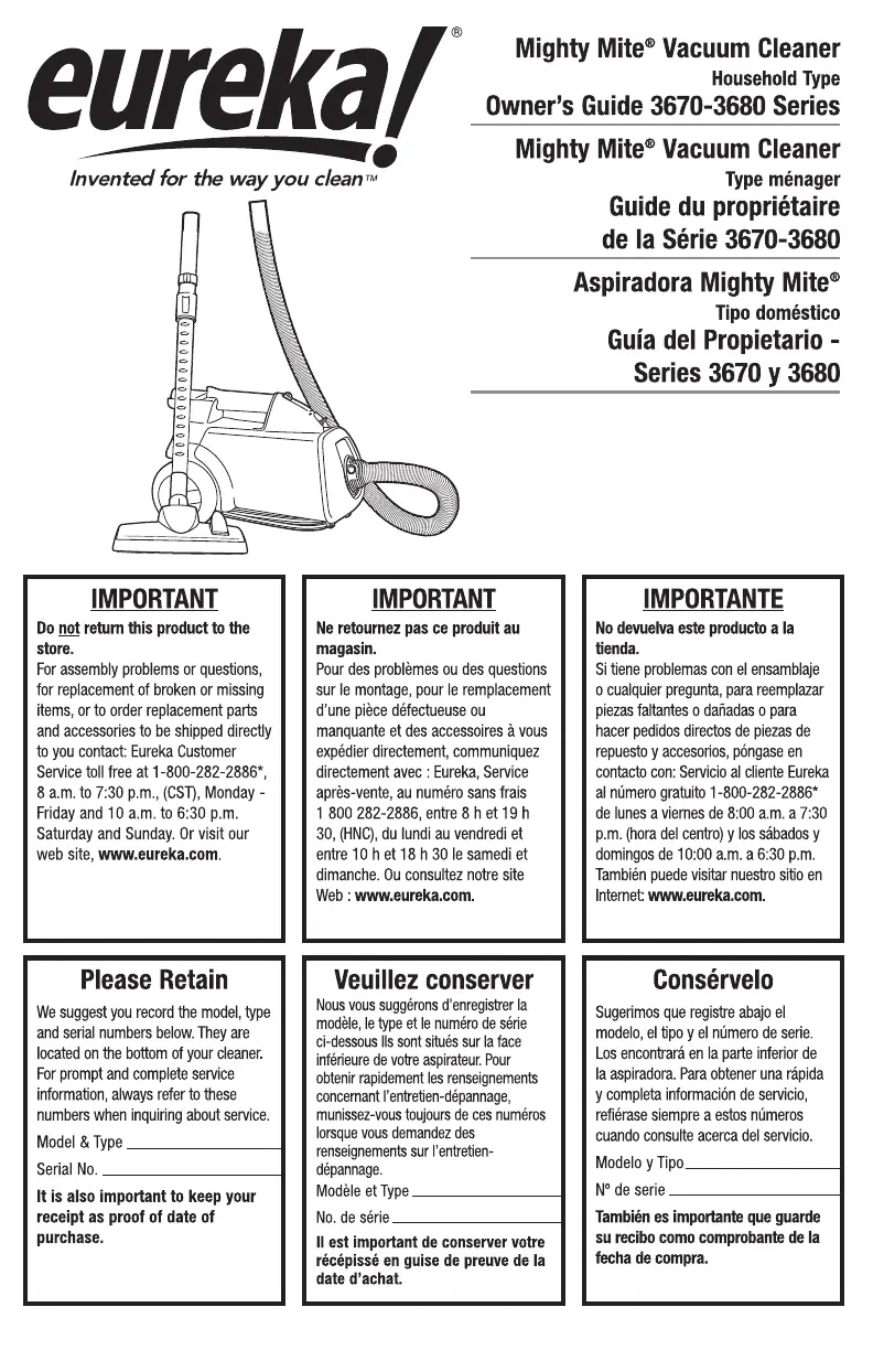 Bekijk gratis de handleiding van Eureka Mighty Mite 3670H (24 pagina’s), behorend tot de categorie Stofzuiger. Deze gids werd als nuttig beoordeeld door 15 mensen en kreeg gemiddeld 4.6 sterren uit 3 reviews. Heb je een vraag over Eureka Mighty Mite 3670H of wil je andere gebruikers van dit product iets vragen? Stel een vraag