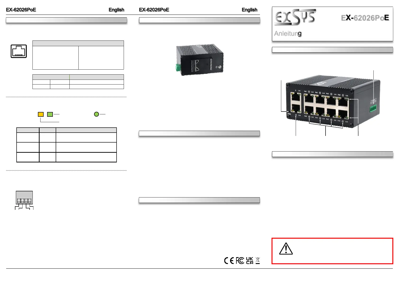 redundant erfolgen. Der EX-62026PoE unterstützt Auto-MDI/MDI-X und Auto-Negotation.