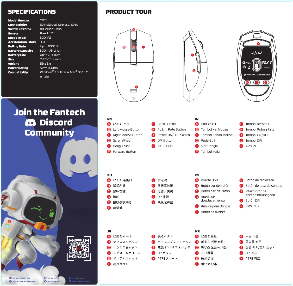 Bekijk gratis de handleiding van Fantech ARIA E XD7E (2 pagina’s), behorend tot de categorie Muis. Deze gids werd als nuttig beoordeeld door 16 mensen en kreeg gemiddeld 4.4 sterren uit 9 reviews. Heb je een vraag over Fantech ARIA E XD7E of wil je andere gebruikers van dit product iets vragen? Stel een vraag