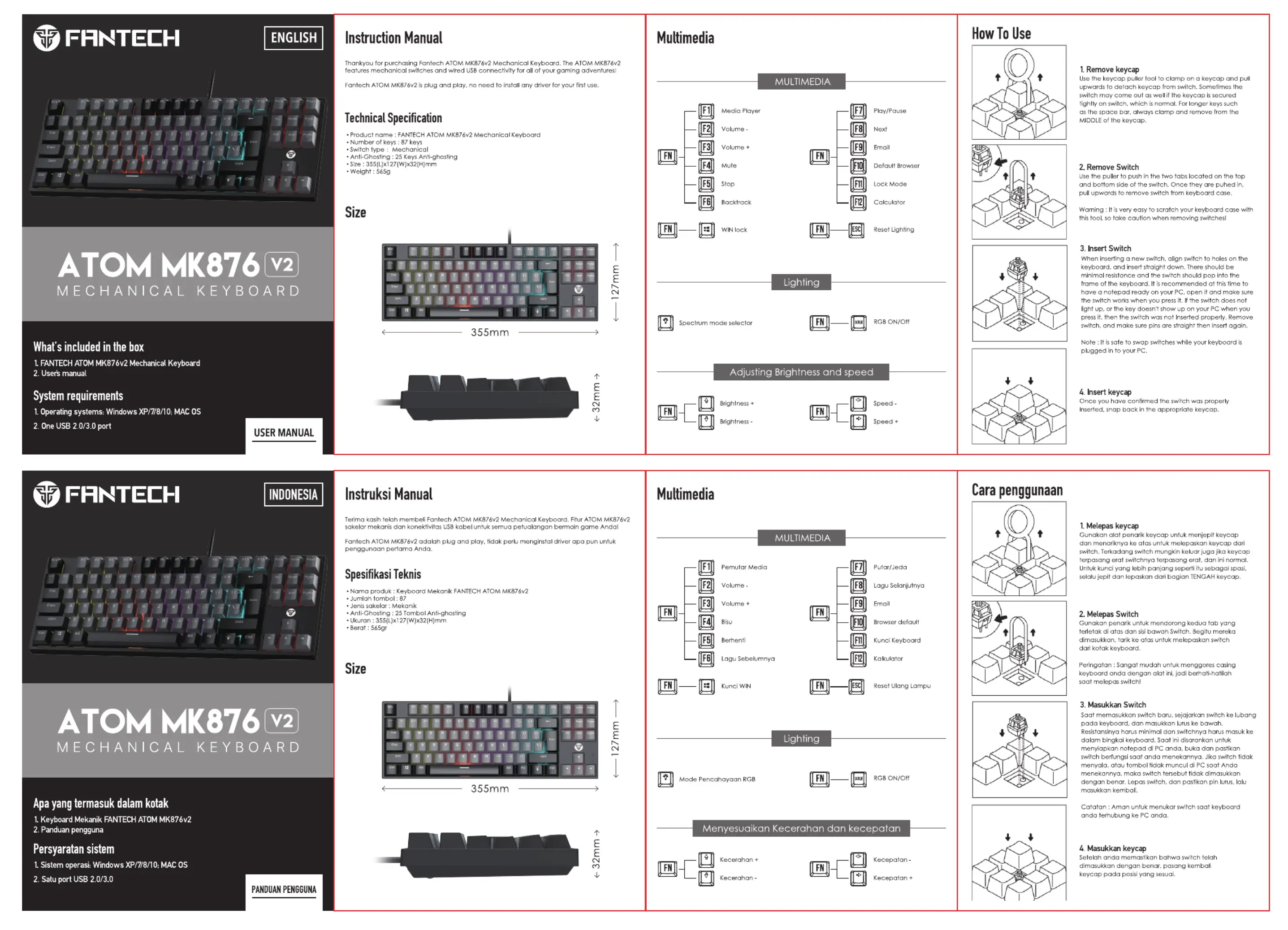 Fantech ATOM TKL MK876V2 Handleiding