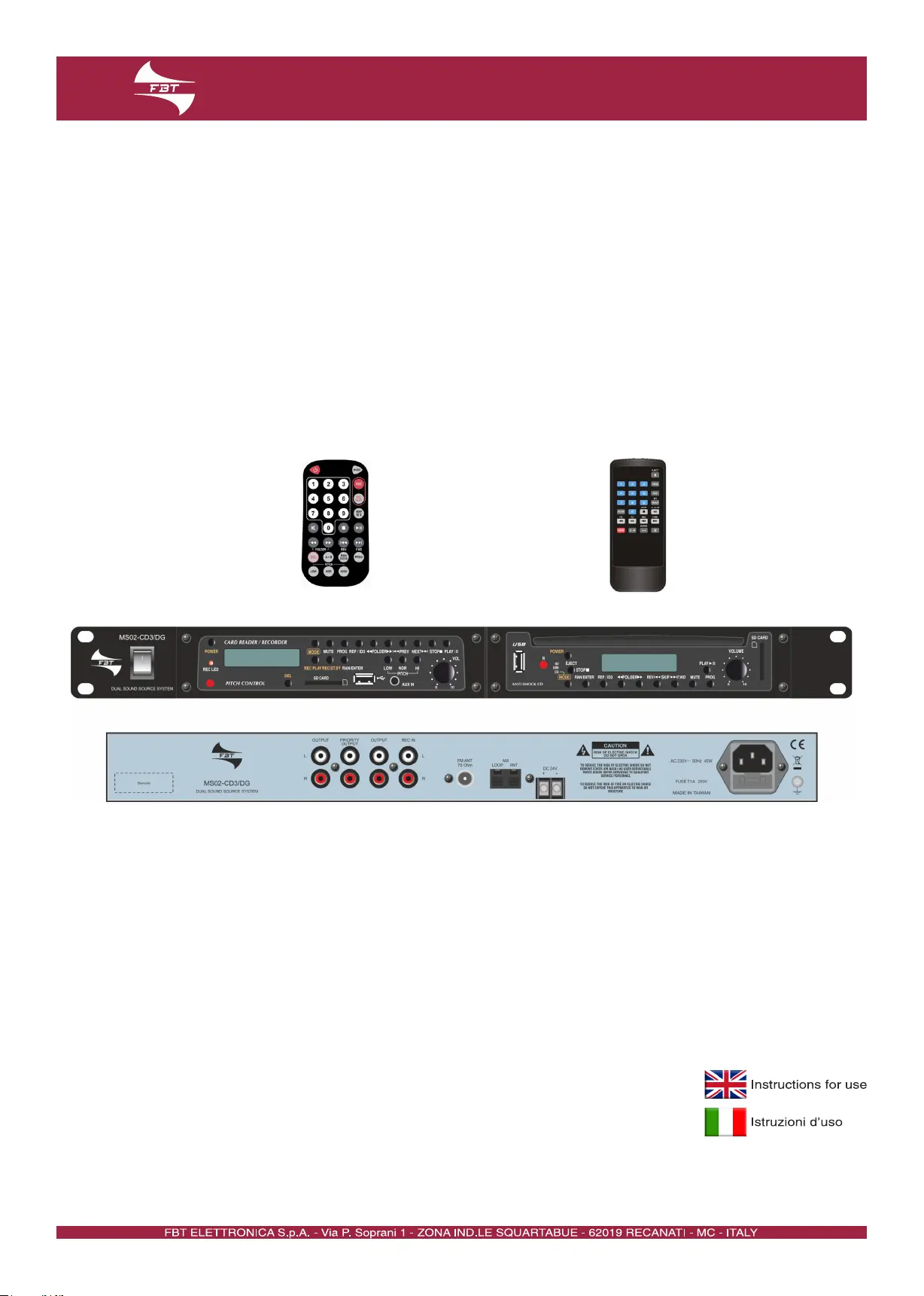 Bekijk gratis de handleiding van FBT MS02 CD3/DG (24 pagina’s), behorend tot de categorie Hifi systeem. Deze gids werd als nuttig beoordeeld door 16 mensen en kreeg gemiddeld 4.3 sterren uit 2 reviews. Heb je een vraag over FBT MS02 CD3/DG of wil je andere gebruikers van dit product iets vragen? Stel een vraag
