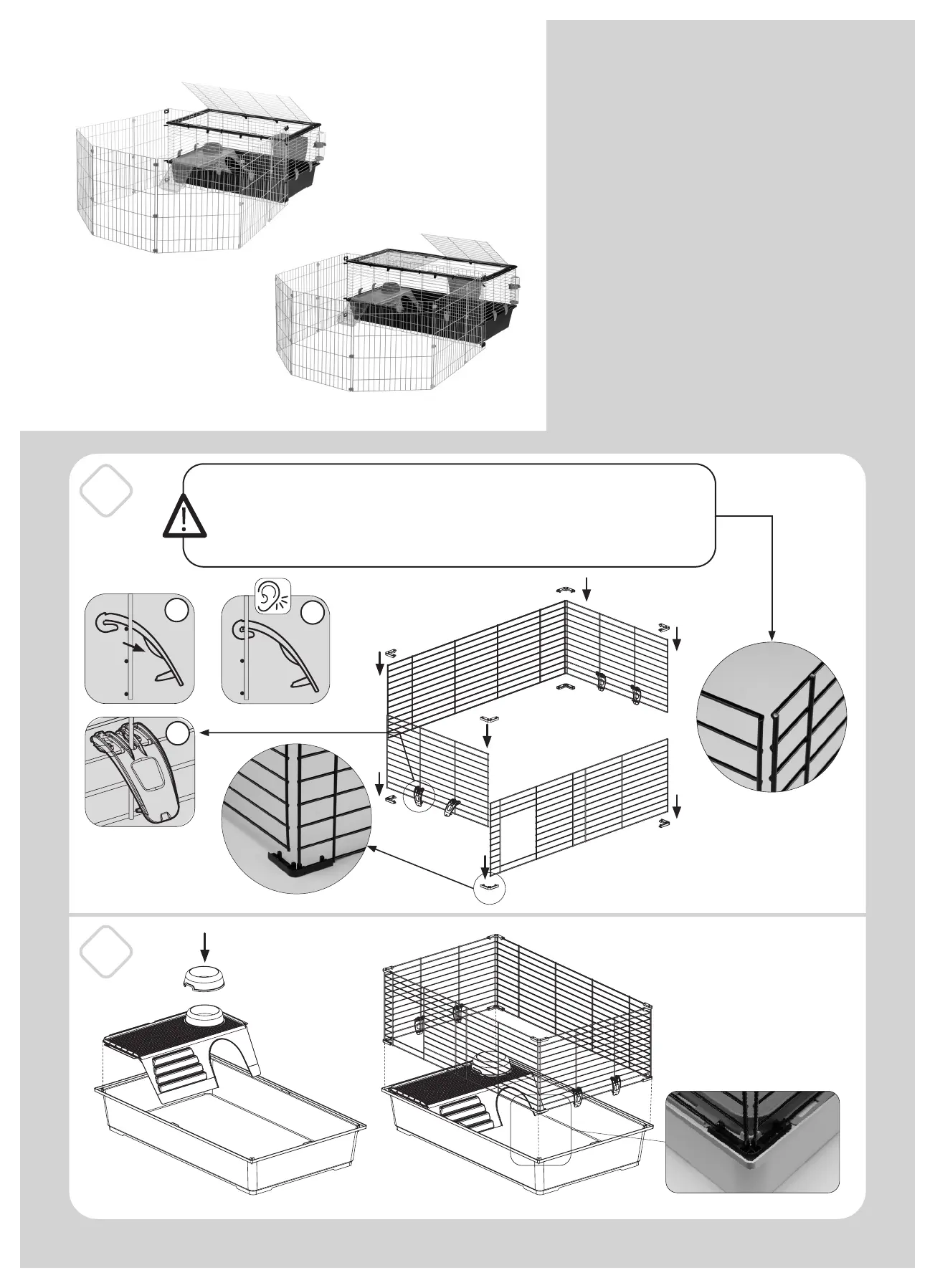 • Positionner la grille afin que les barres verticales soient sur le côté extérieur de la cage.