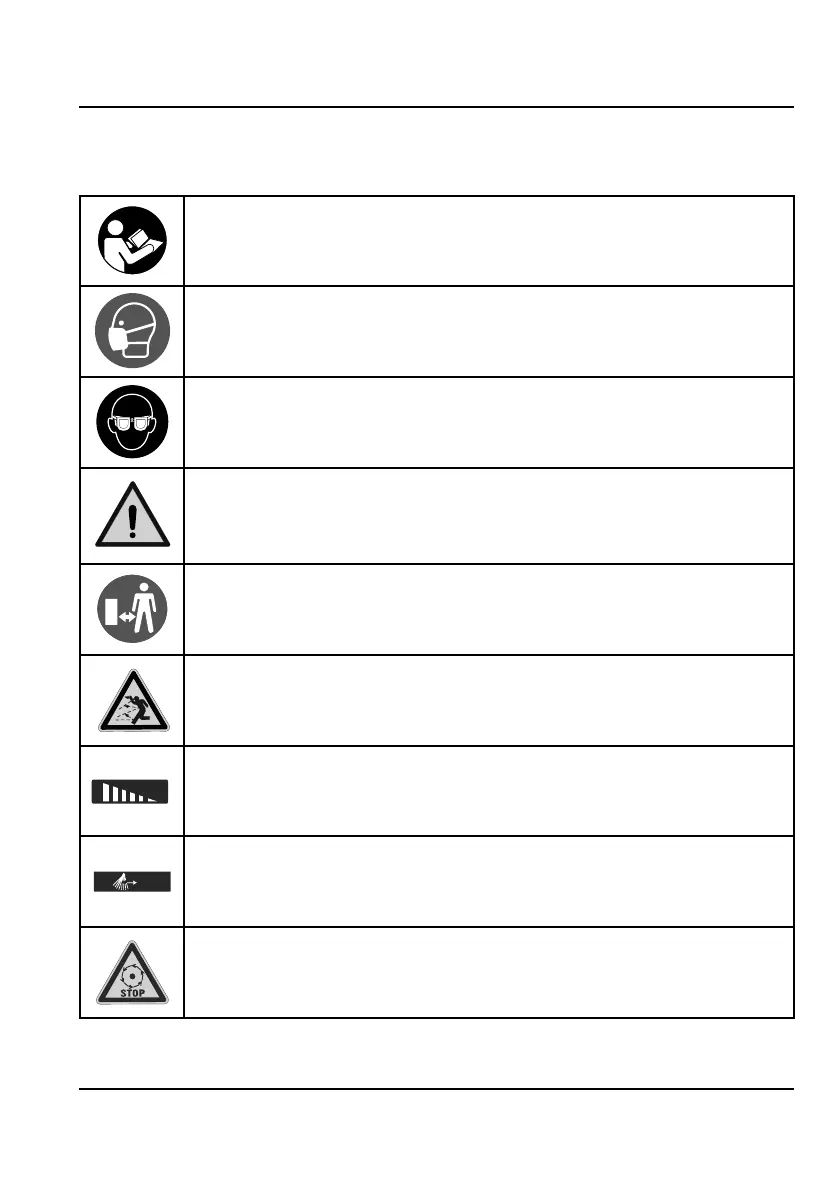 Make sure that other persons maintain a sufficient safety distance. Keep unin-