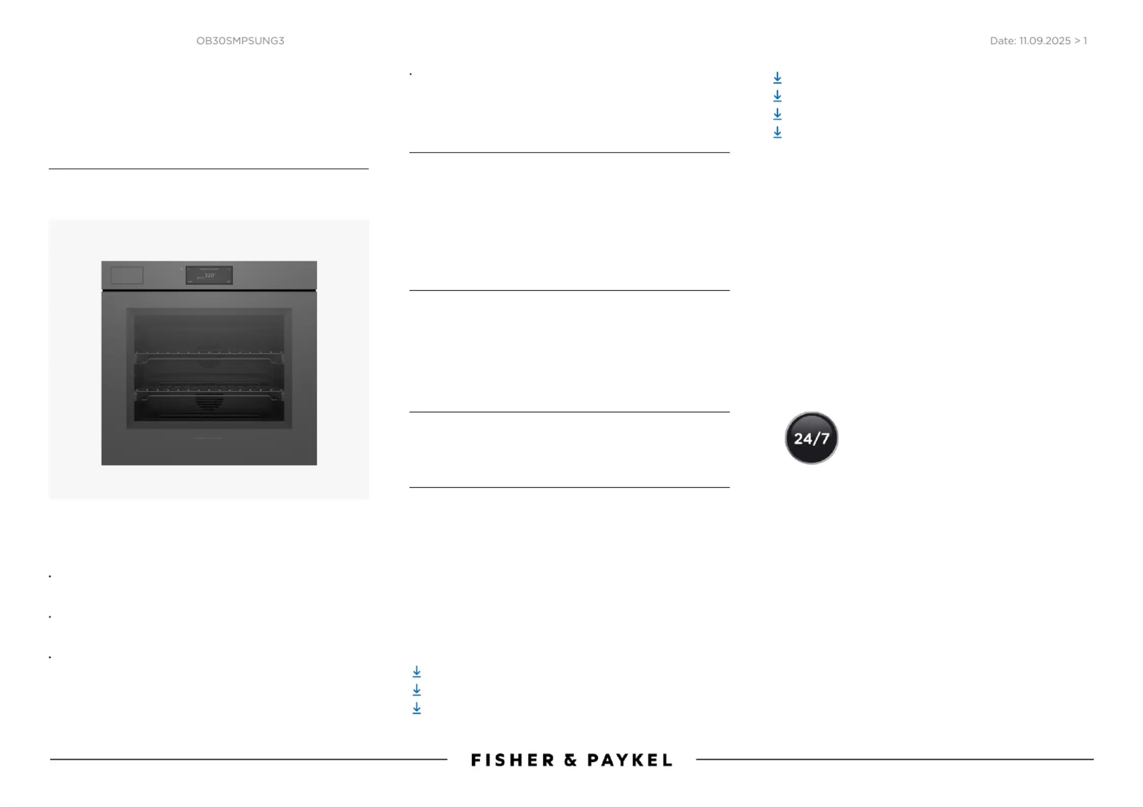 Fisher Paykel OB30SMPSUNG3 Handleiding