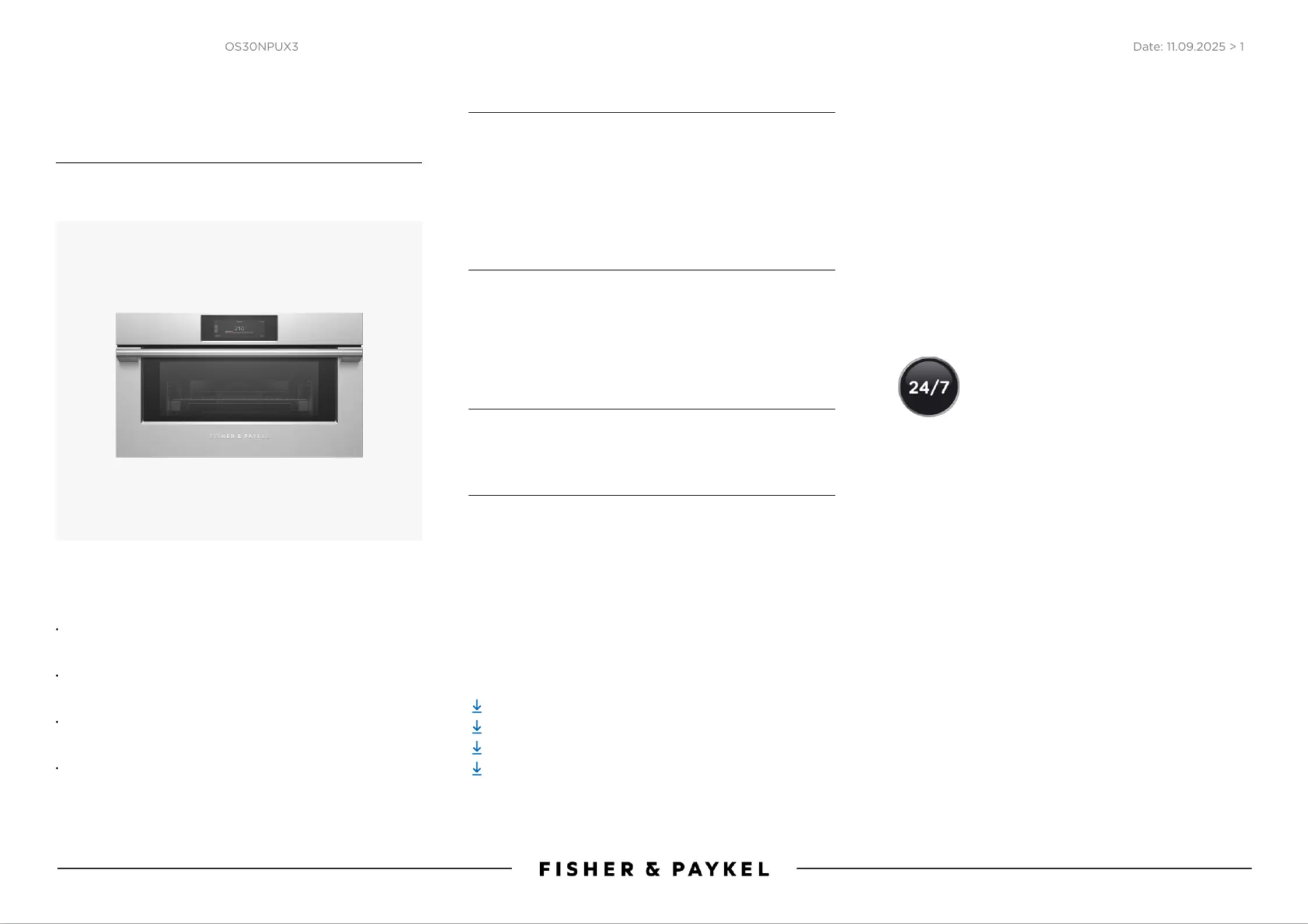 Fisher Paykel Oven OS30NPUX3