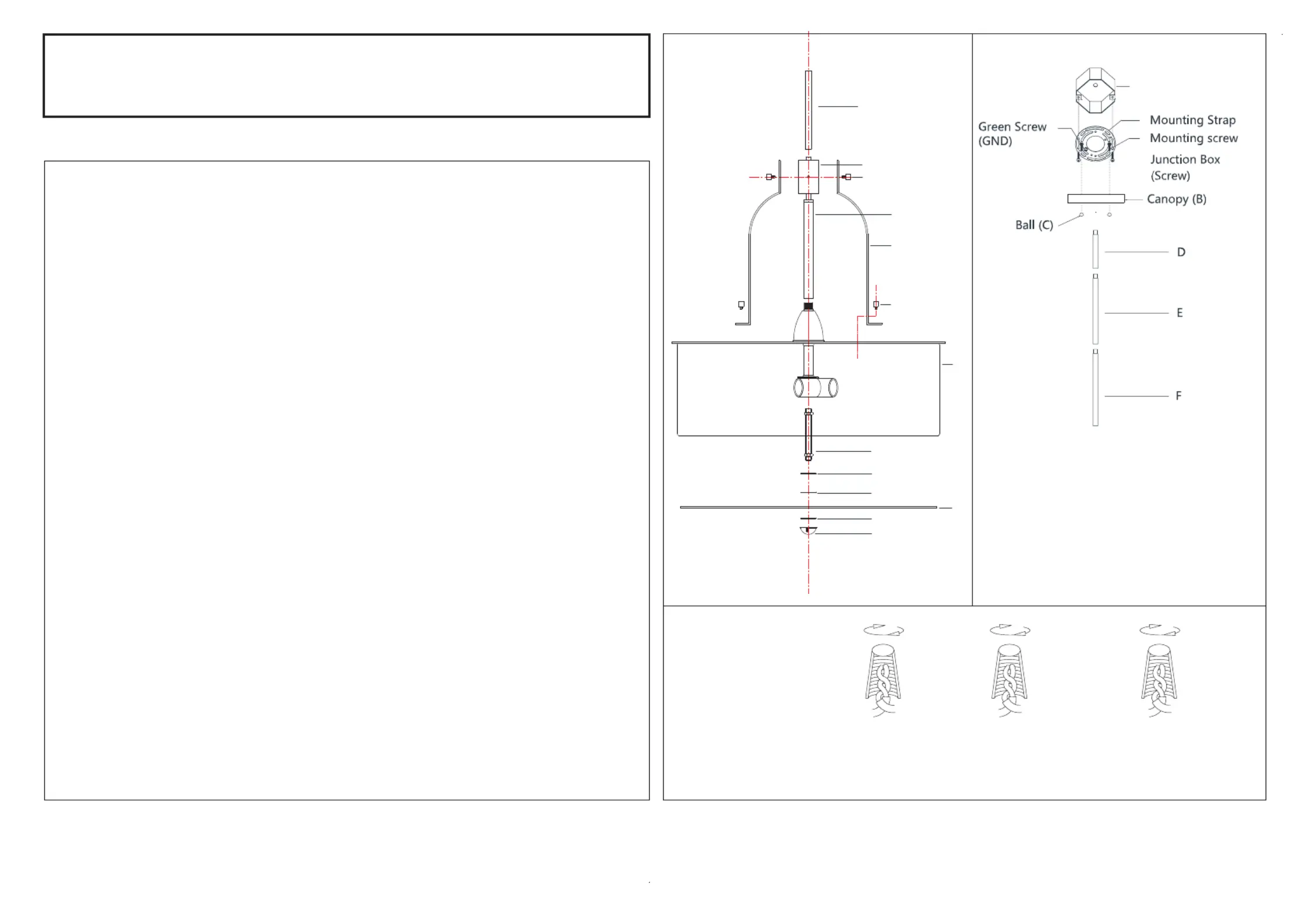 4.Determine the appropriate hanging height. There are a 6” (D), a 12” (E) and an 18” (F)