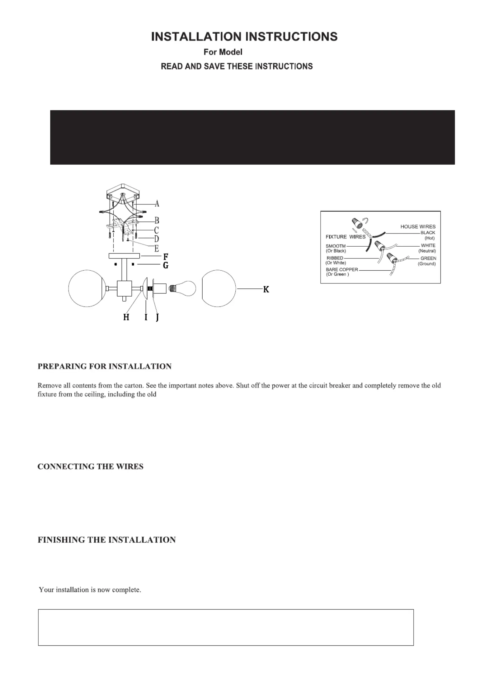 installation of the lighting fixture.We strongly suggest that all direct-wired fixture be installed by a qualified and licensed