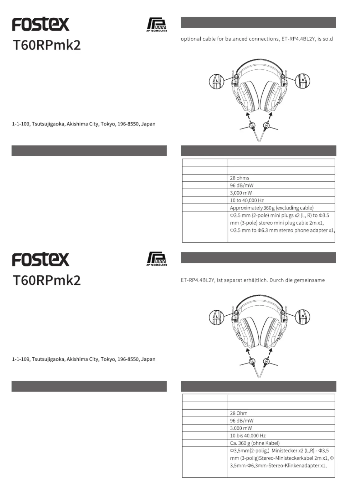 Bekijk gratis de handleiding van Fostex T60RPmk2 (1 pagina’s), behorend tot de categorie Hoofdtelefoon. Deze gids werd als nuttig beoordeeld door 13 mensen en kreeg gemiddeld 4.4 sterren uit 4 reviews. Heb je een vraag over Fostex T60RPmk2 of wil je andere gebruikers van dit product iets vragen? Stel een vraag