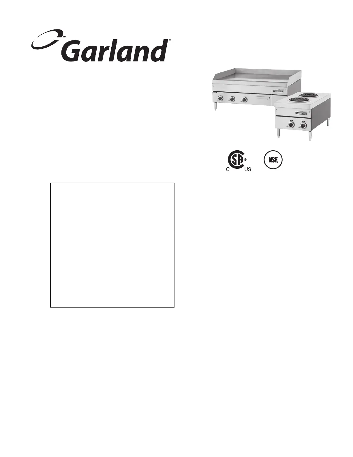 For a list of authorized service agents, please refer to the Garland web site at http://www.garland-group.com.