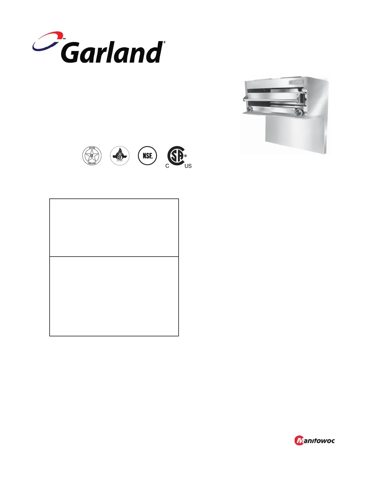 Users are cautioned that maintenance and repairs must be performed by a Garland authorized service agent using genuine