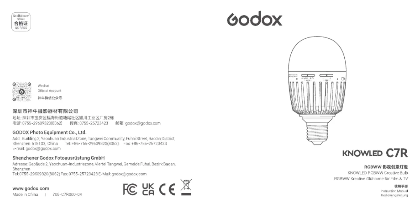 Bekijk gratis de handleiding van Godox C7R (24 pagina’s), behorend tot de categorie Lamp. Deze gids werd als nuttig beoordeeld door 16 mensen en kreeg gemiddeld 4.3 sterren uit 9 reviews. Heb je een vraag over Godox C7R of wil je andere gebruikers van dit product iets vragen? Stel een vraag